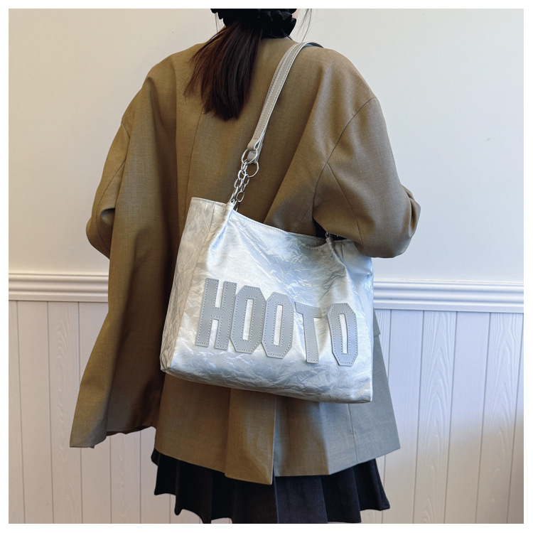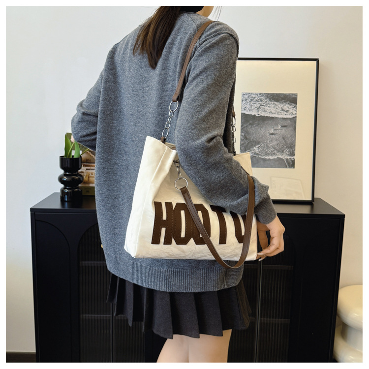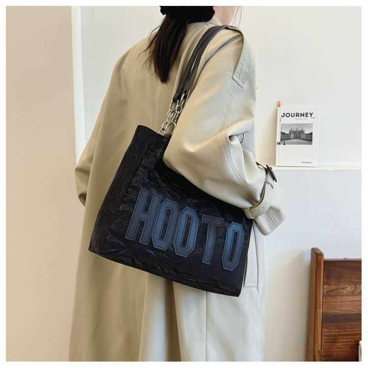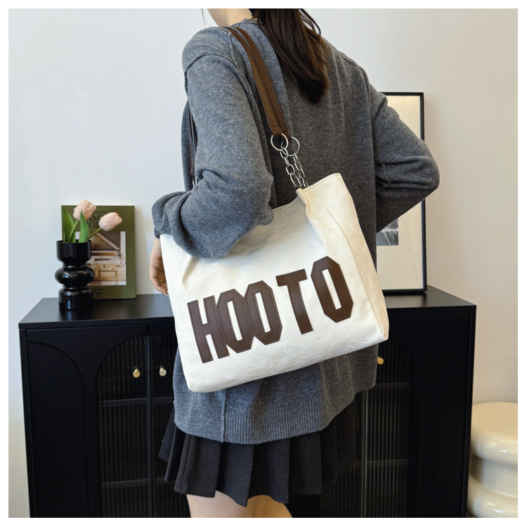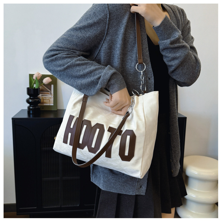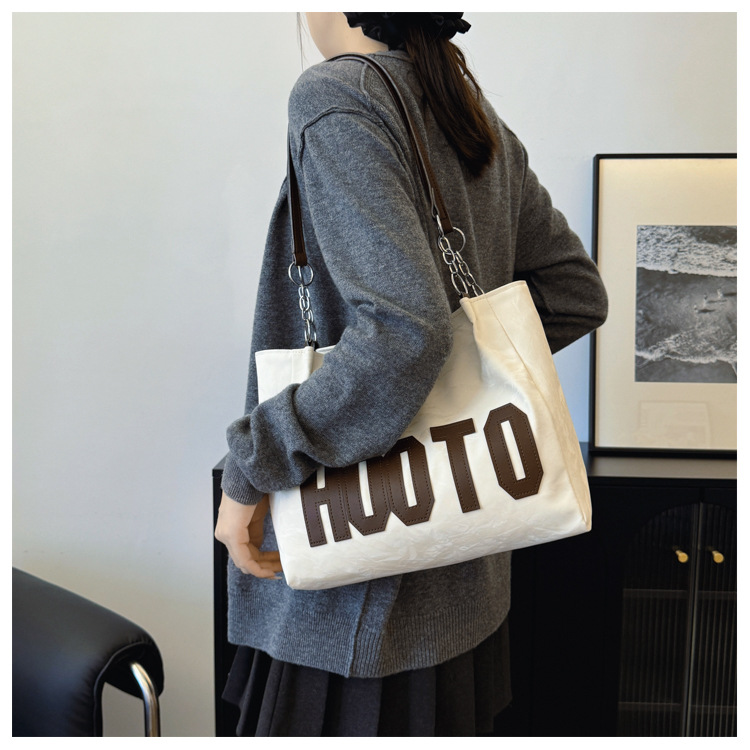大容量字母托特包女质感时尚手提包大学生上课背包简约上班腋下包