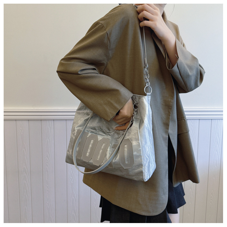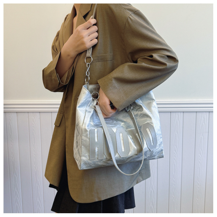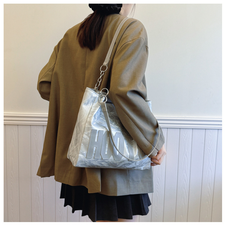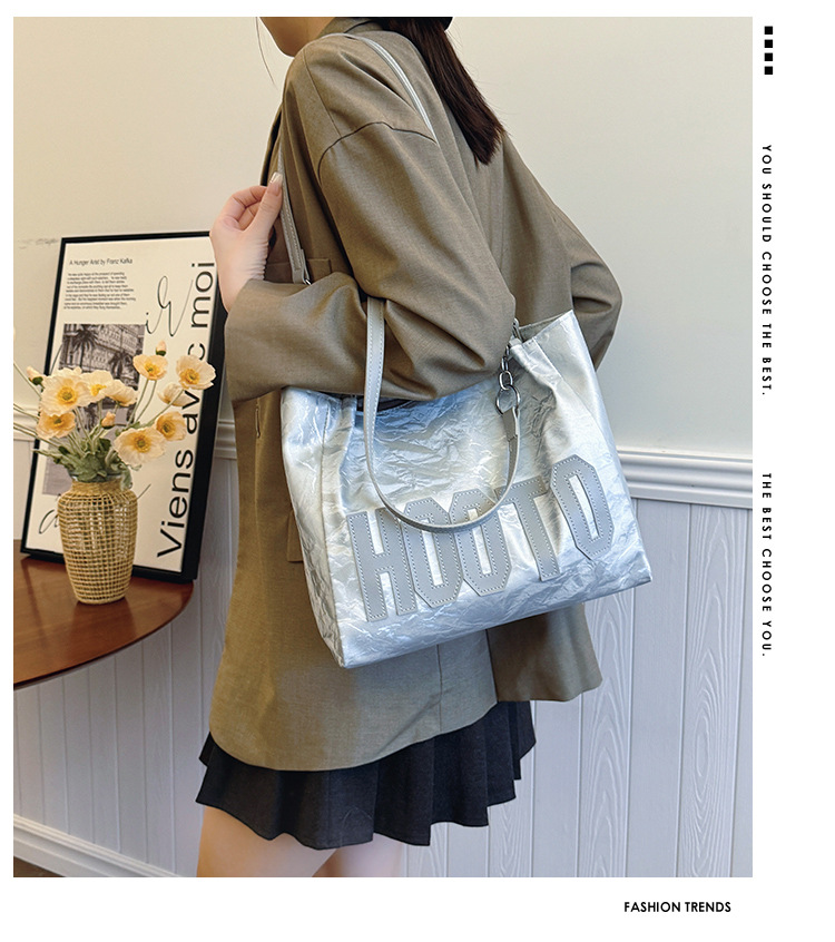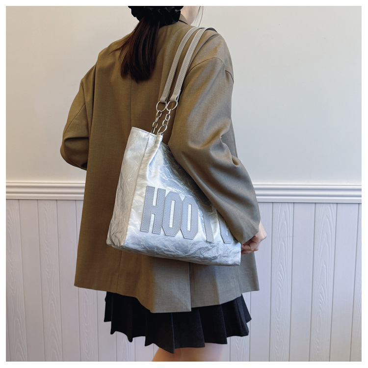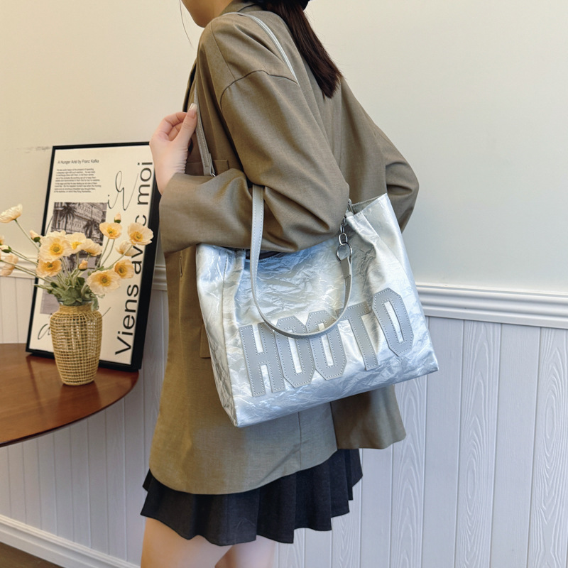 大容量字母托特包女质感时尚手提包大学生上课背包简约上班腋下包