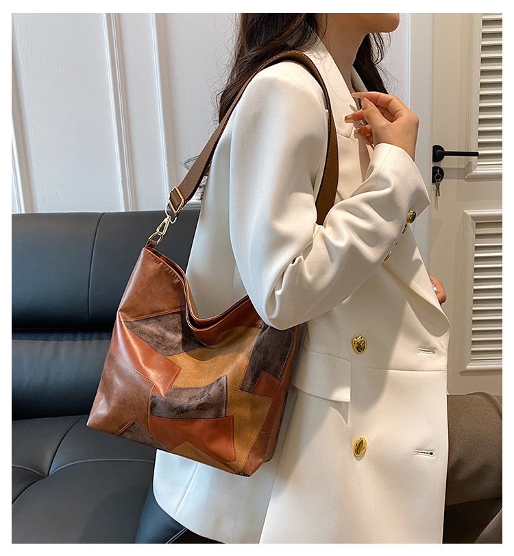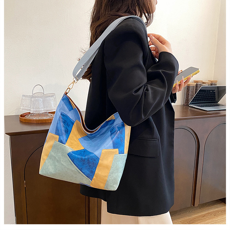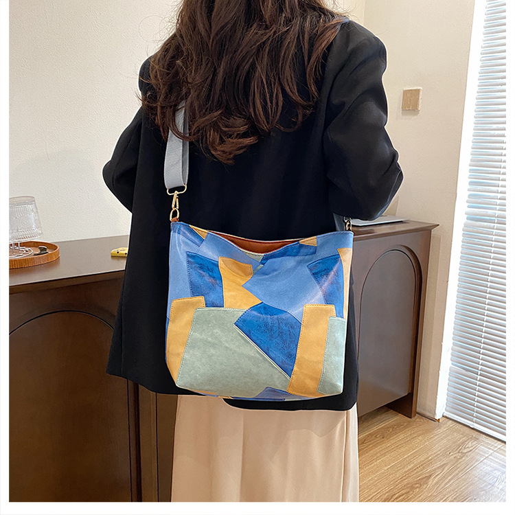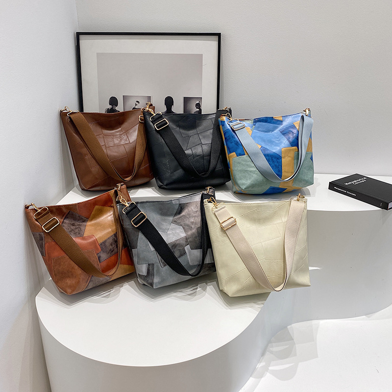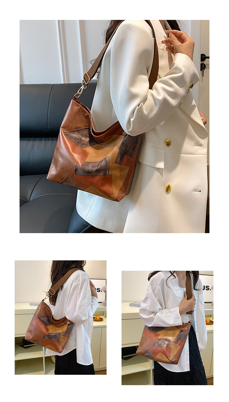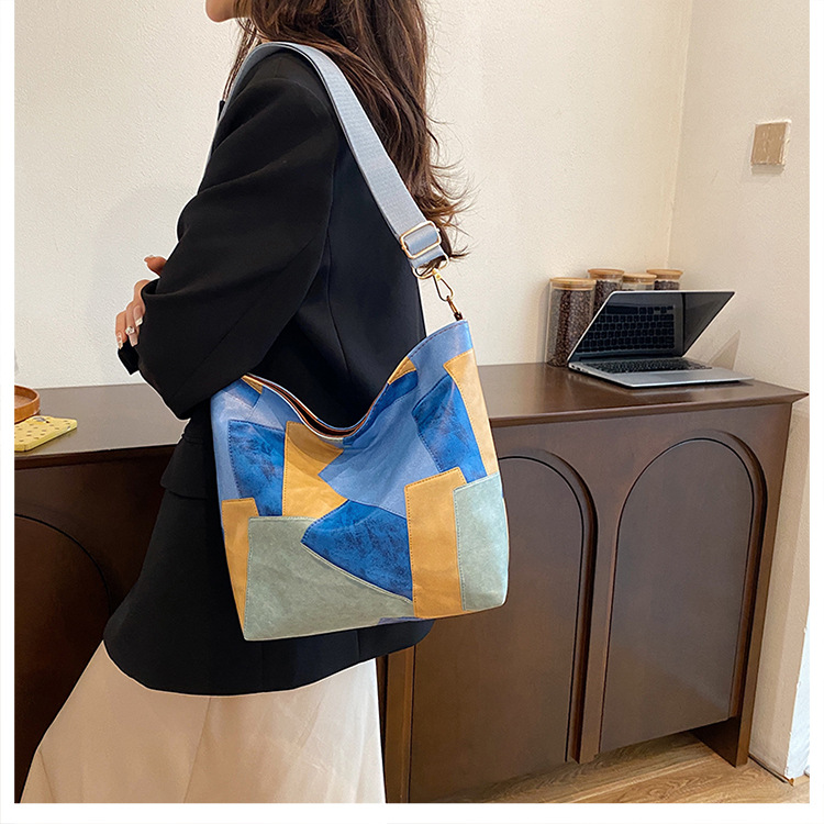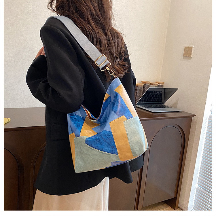 休闲撞色拼接大容量2024复古秋季新款简约洋气质感托特单肩腋下包