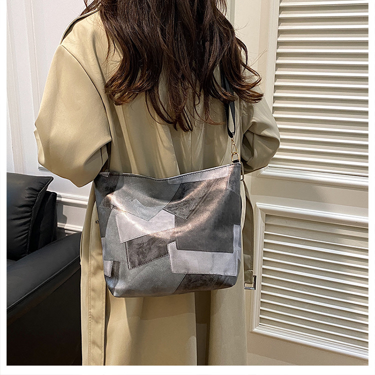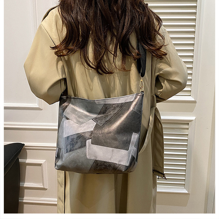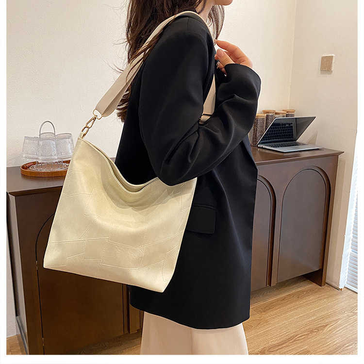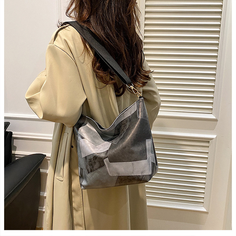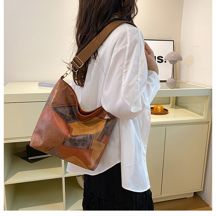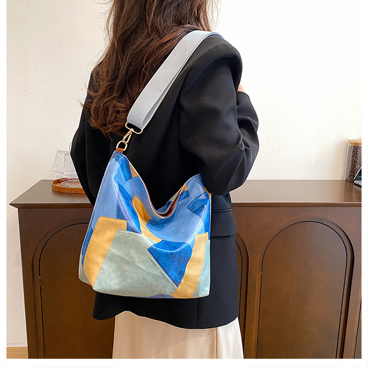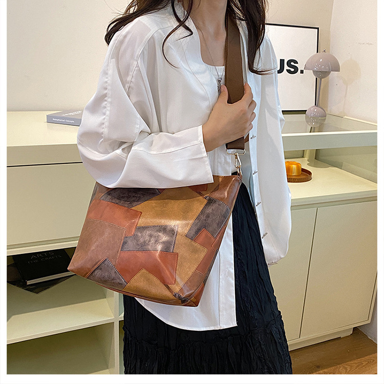 休闲撞色拼接大容量2024复古秋季新款简约洋气质感托特单肩腋下包