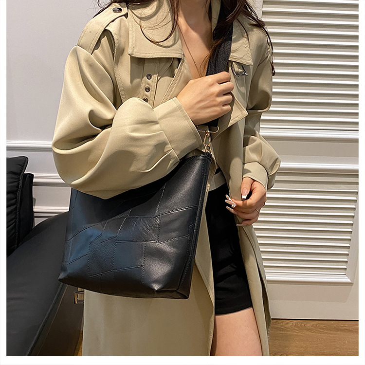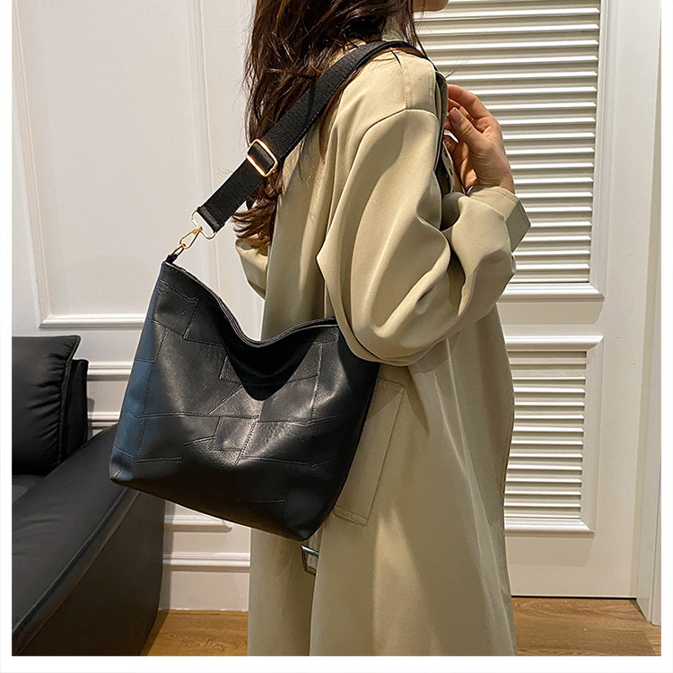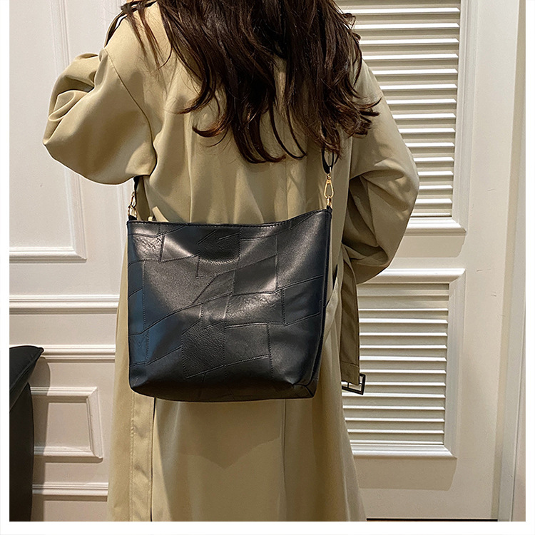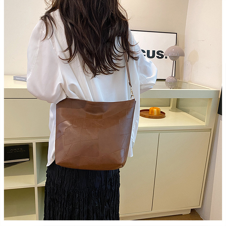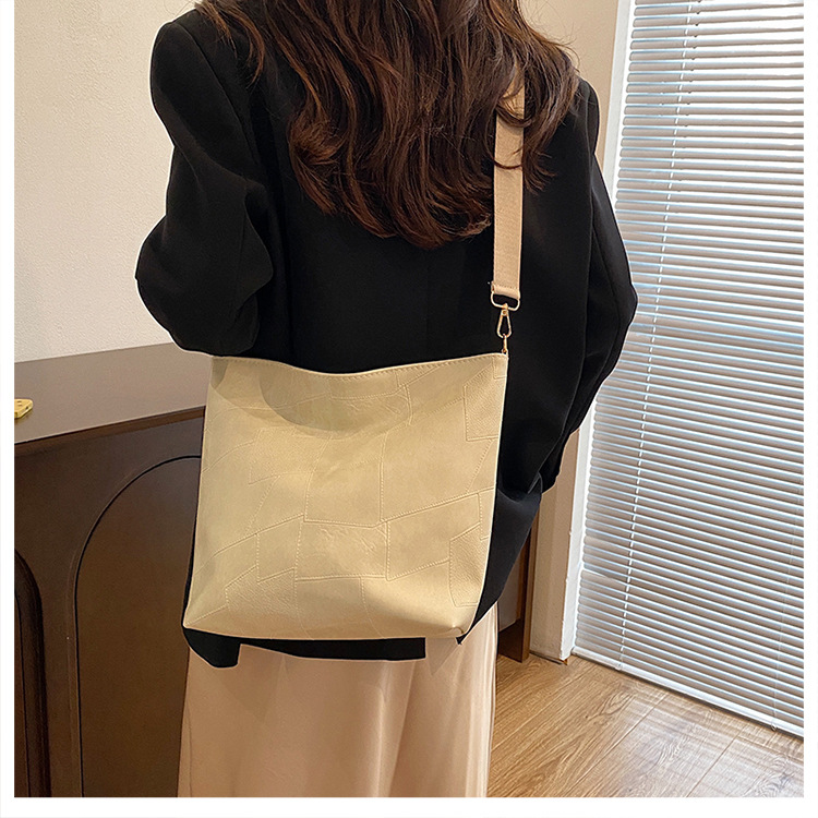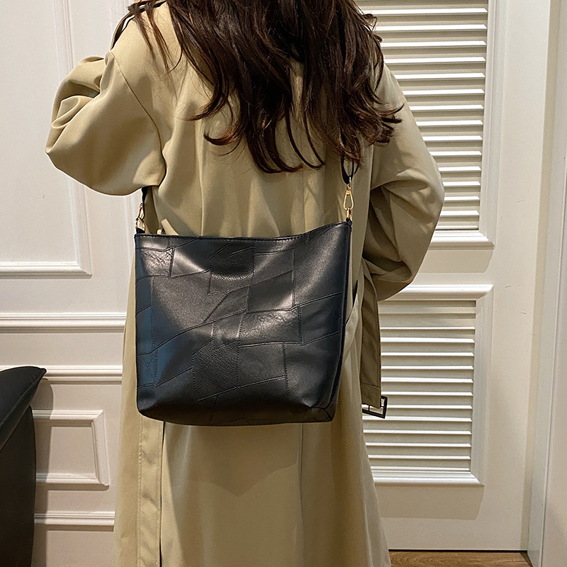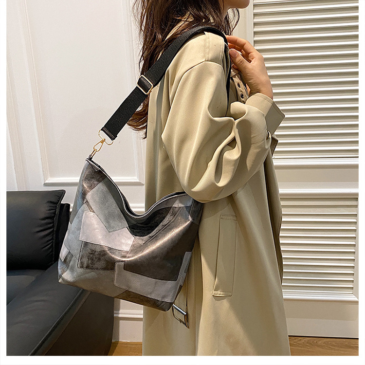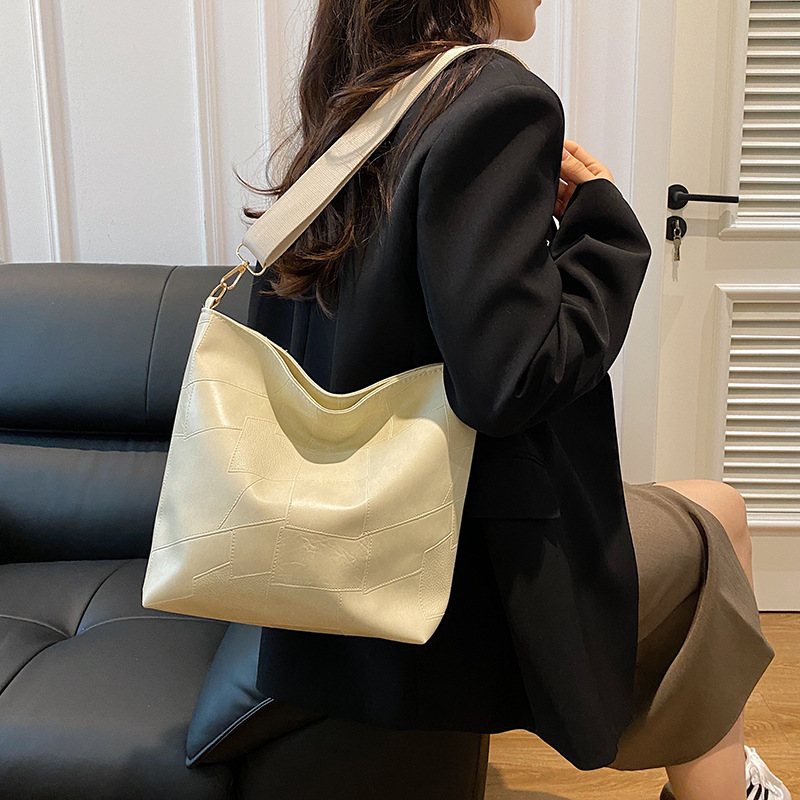 休闲撞色拼接大容量2024复古秋季新款简约洋气质感托特单肩腋下包