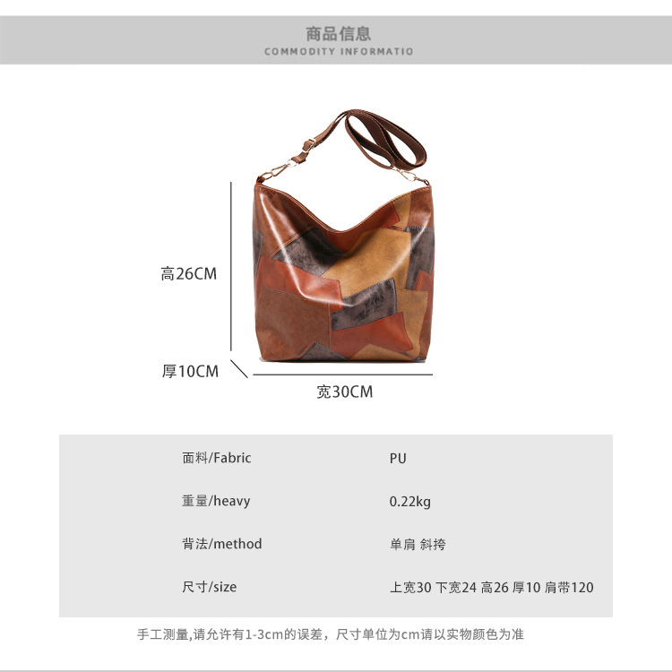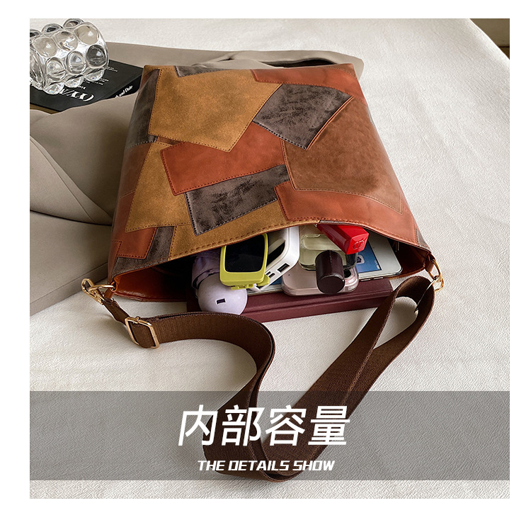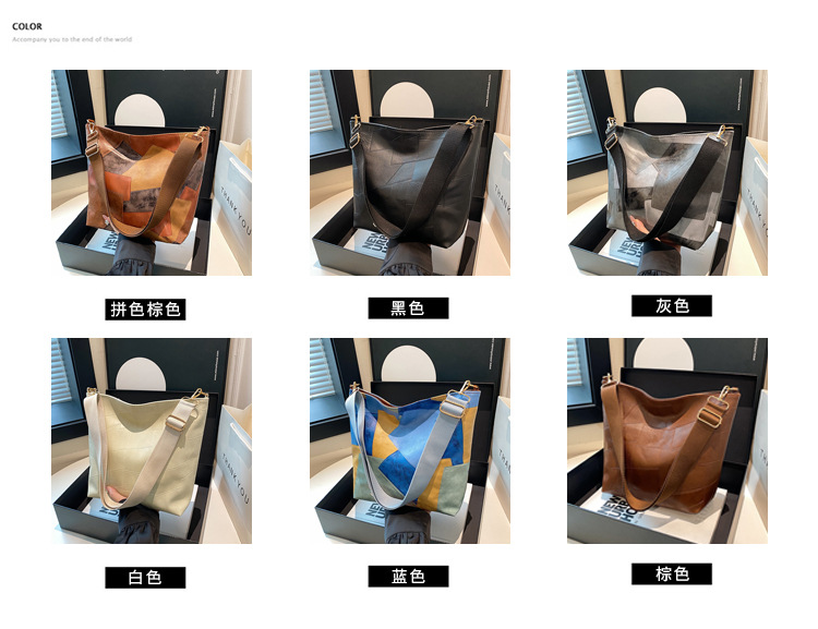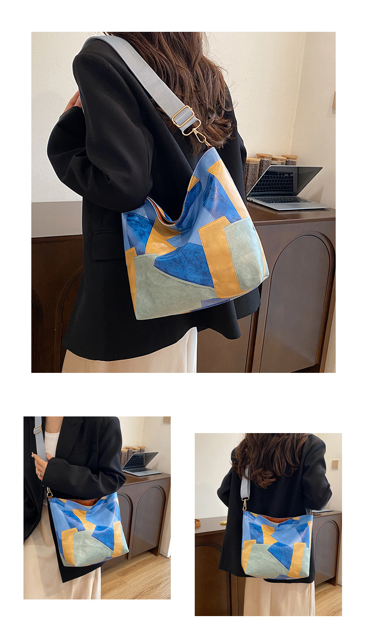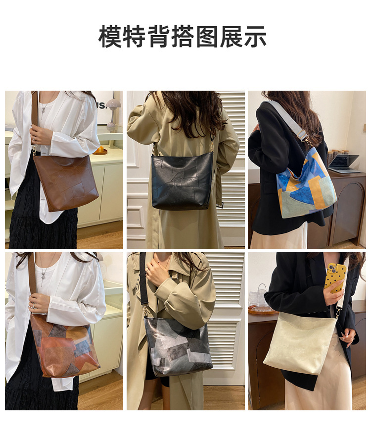 休闲撞色拼接大容量2024复古秋季新款简约洋气质感托特单肩腋下包 投诉