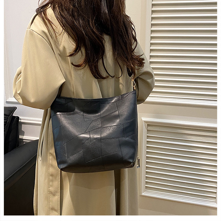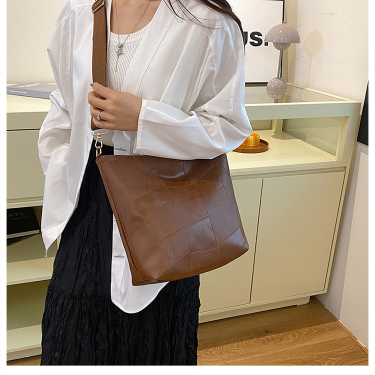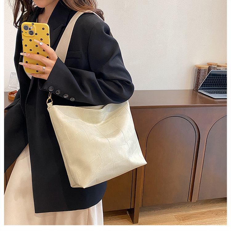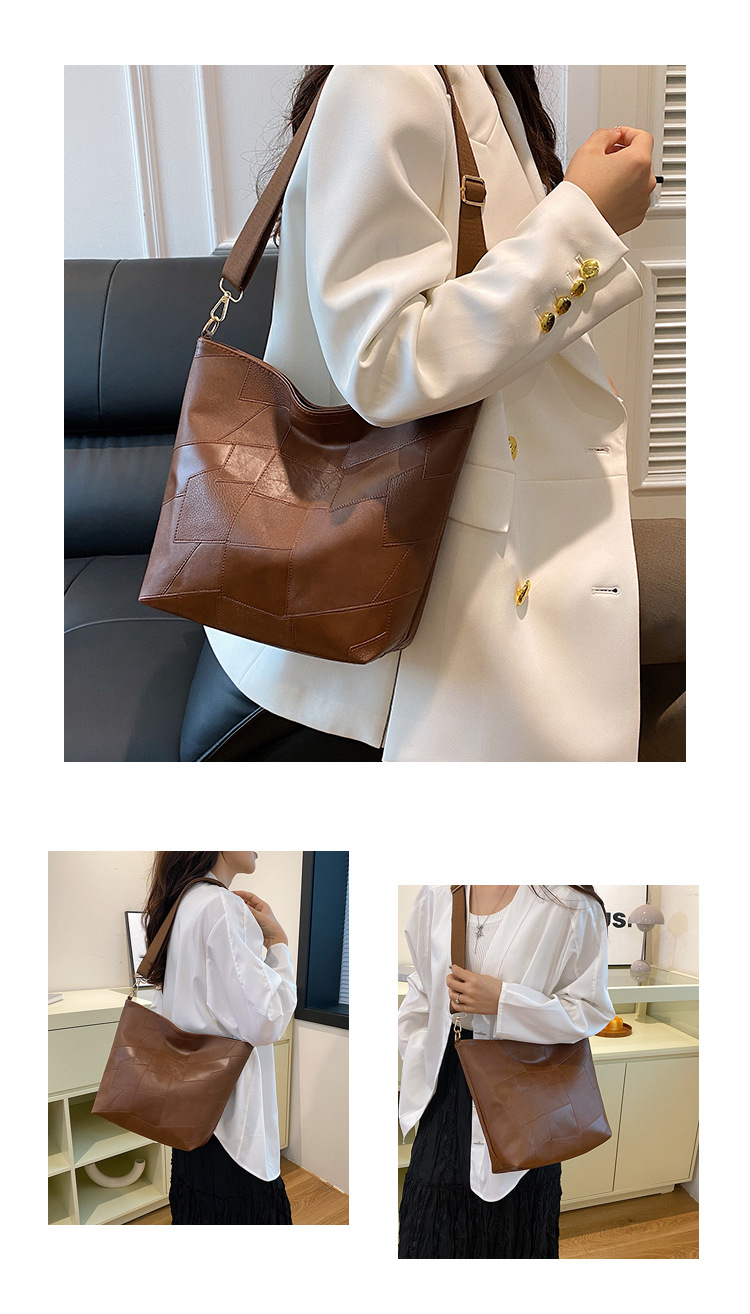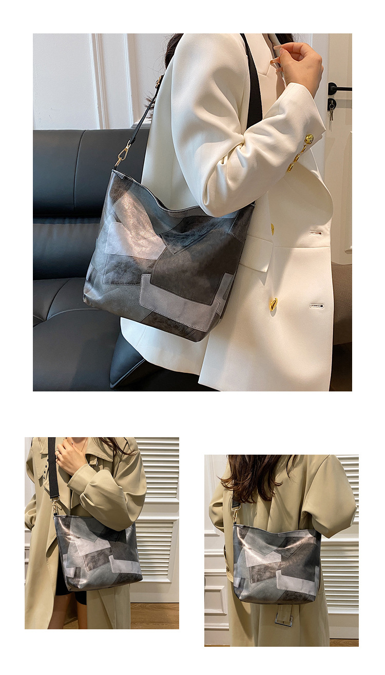 休闲撞色拼接大容量2024复古秋季新款简约洋气质感托特单肩腋下包 投诉