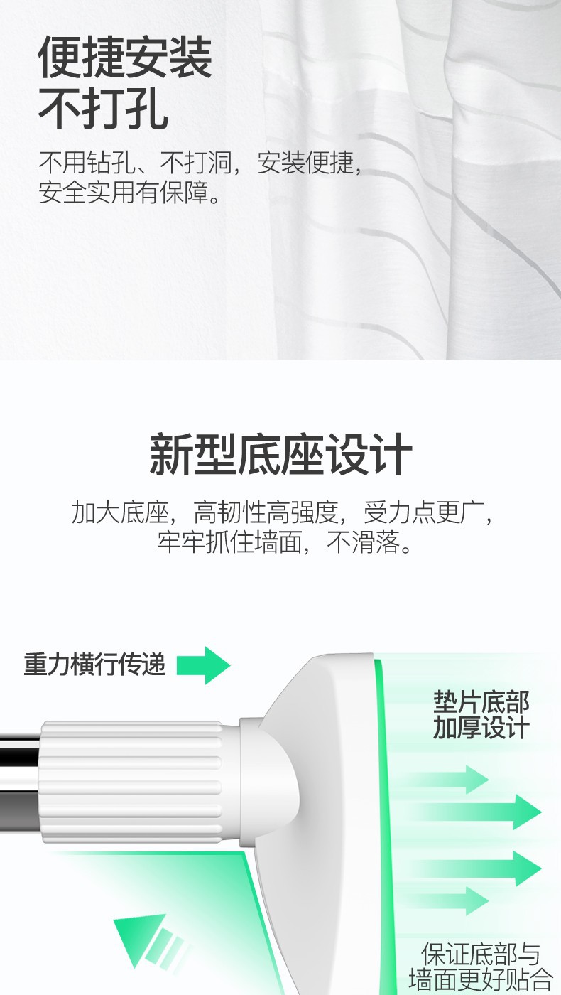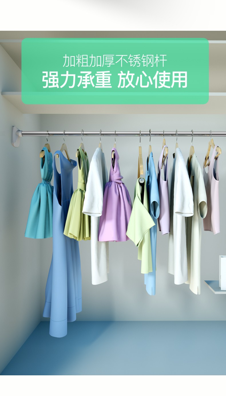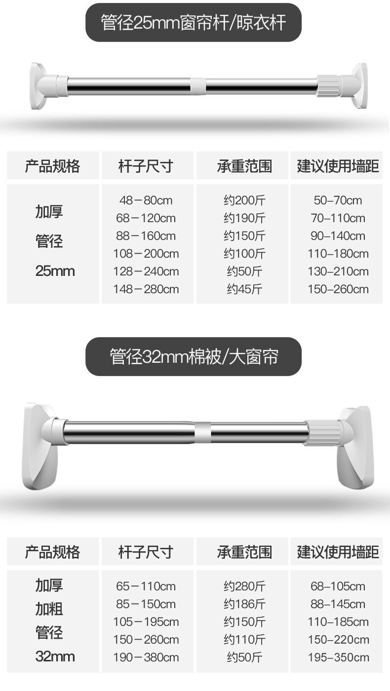 单个客户购买须知:请先找客服询问使用视频,确认会使用了在购买会更加愉快使用哦。这是免打孔的,是杆子的承重不会让杆子弯曲,要是想长期挂重物使用可以购回自行打孔上墙。2.8-3.2m的墙面380是用不了的哦,亲注意看这里的细节。