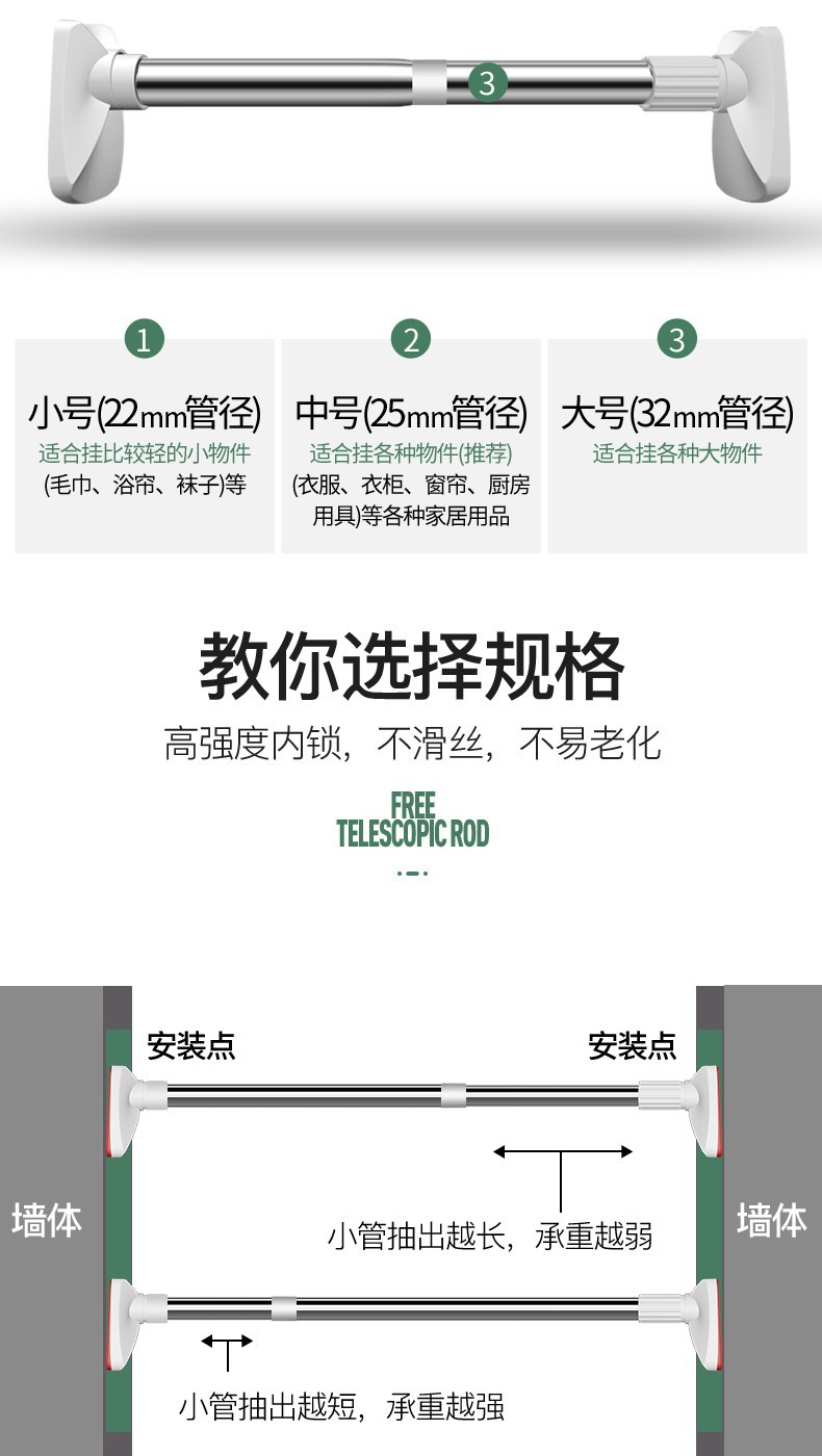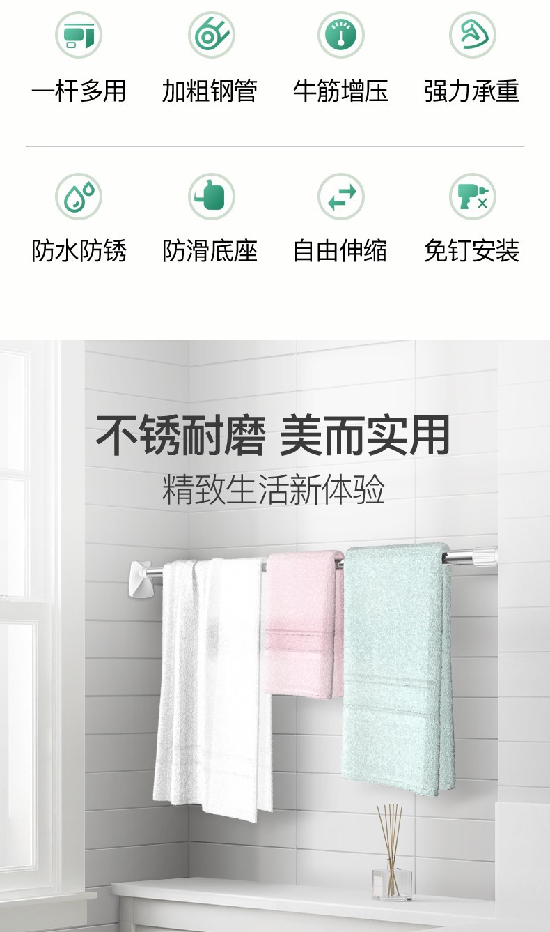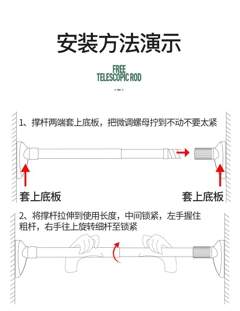 单个客户购买须知:请先找客服询问使用视频,确认会使用了在购买会更加愉快使用哦。这是免打孔的,是杆子的承重不会让杆子弯曲,要是想长期挂重物使用可以购回自行打孔上墙。2.8-3.2m的墙面380是用不了的哦,亲注意看这里的细节。