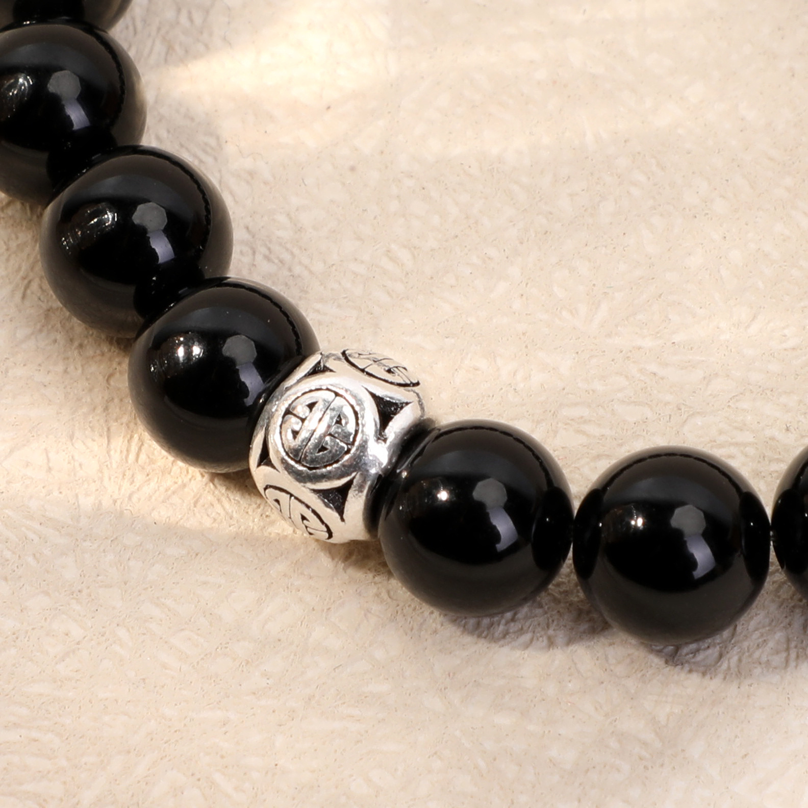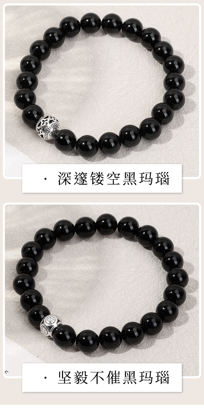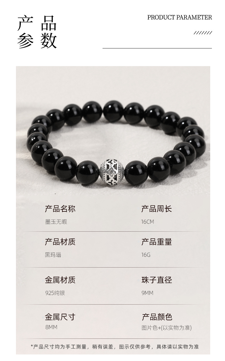 天然石925银饰配件吊坠女手链黑玛瑙时尚手串跨境手工串珠批发 投诉