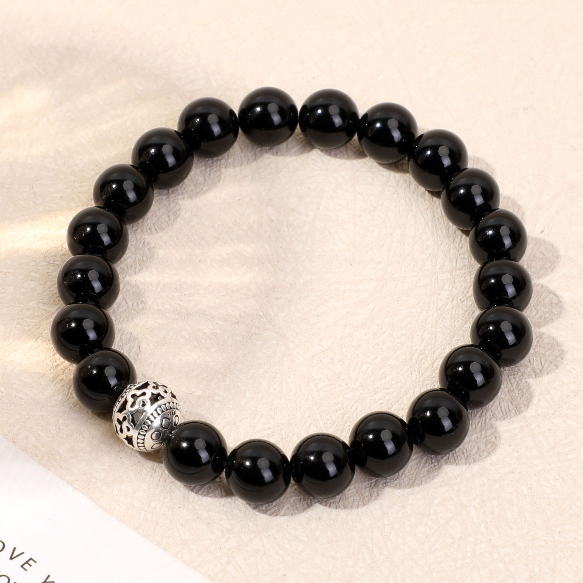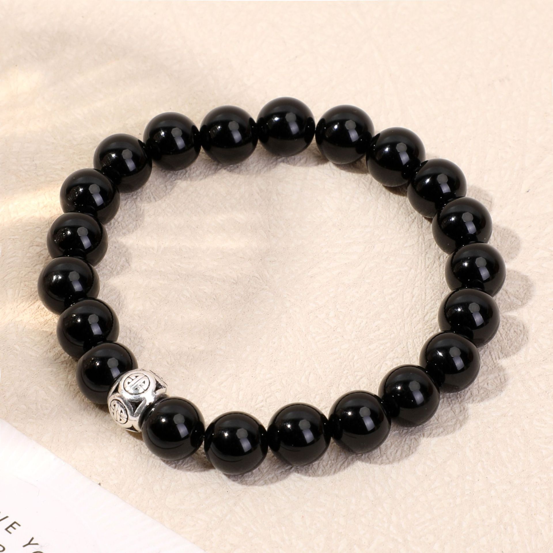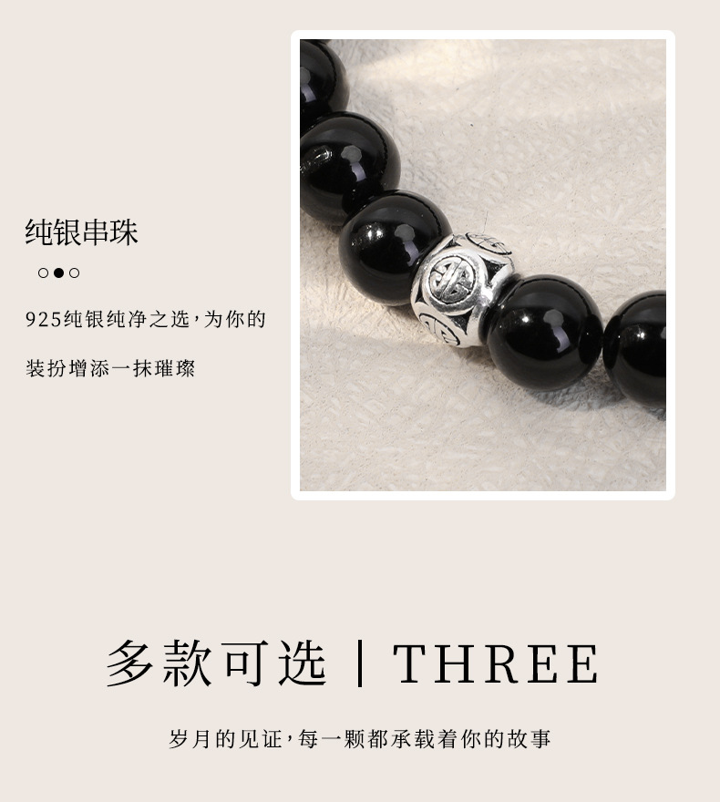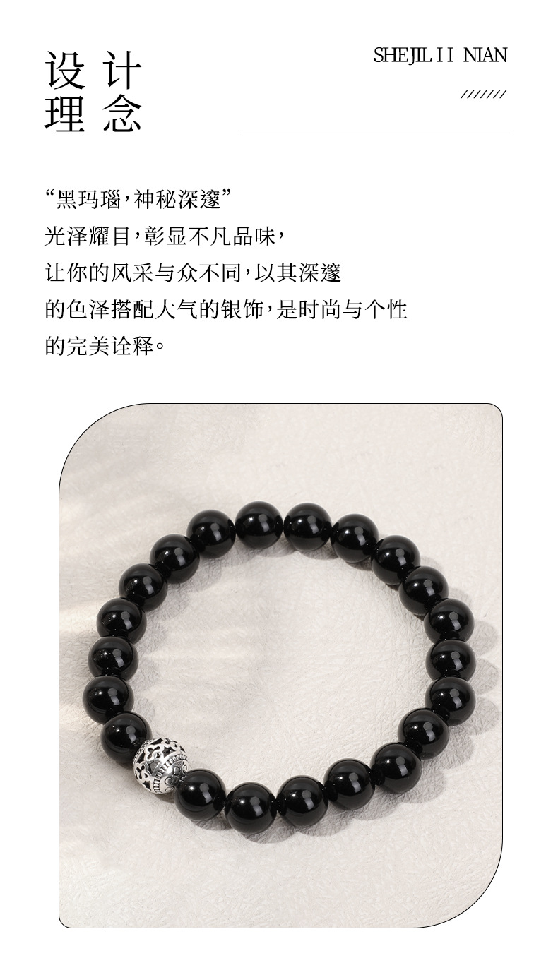 天然石925银饰配件吊坠女手链黑玛瑙时尚手串跨境手工串珠批发