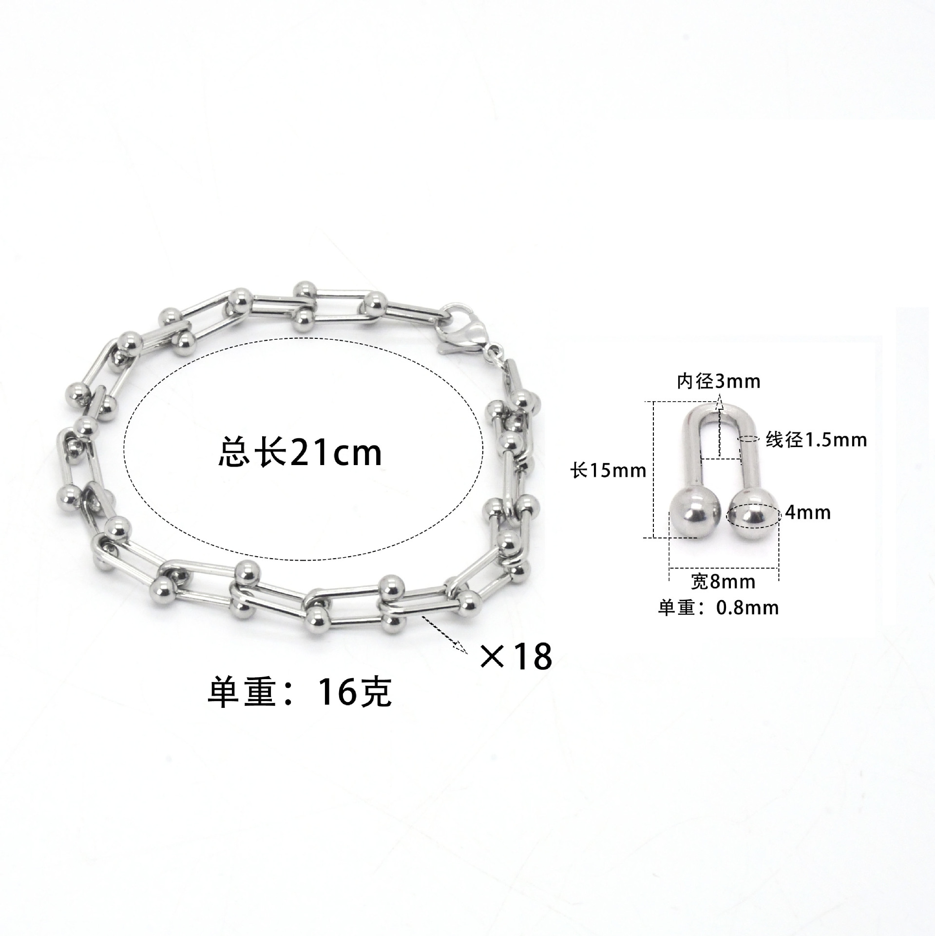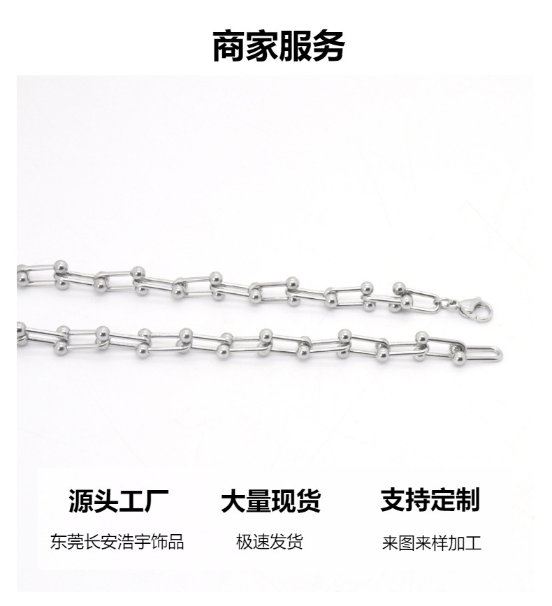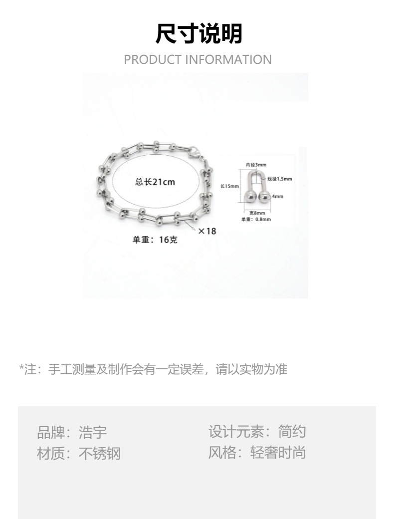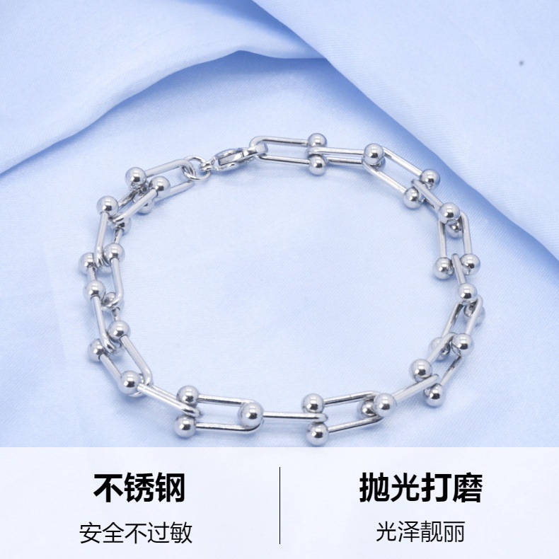 新款欧美简约不锈钢U型手链轻奢小众每节 可拆卸设计男女饰品批发 投诉