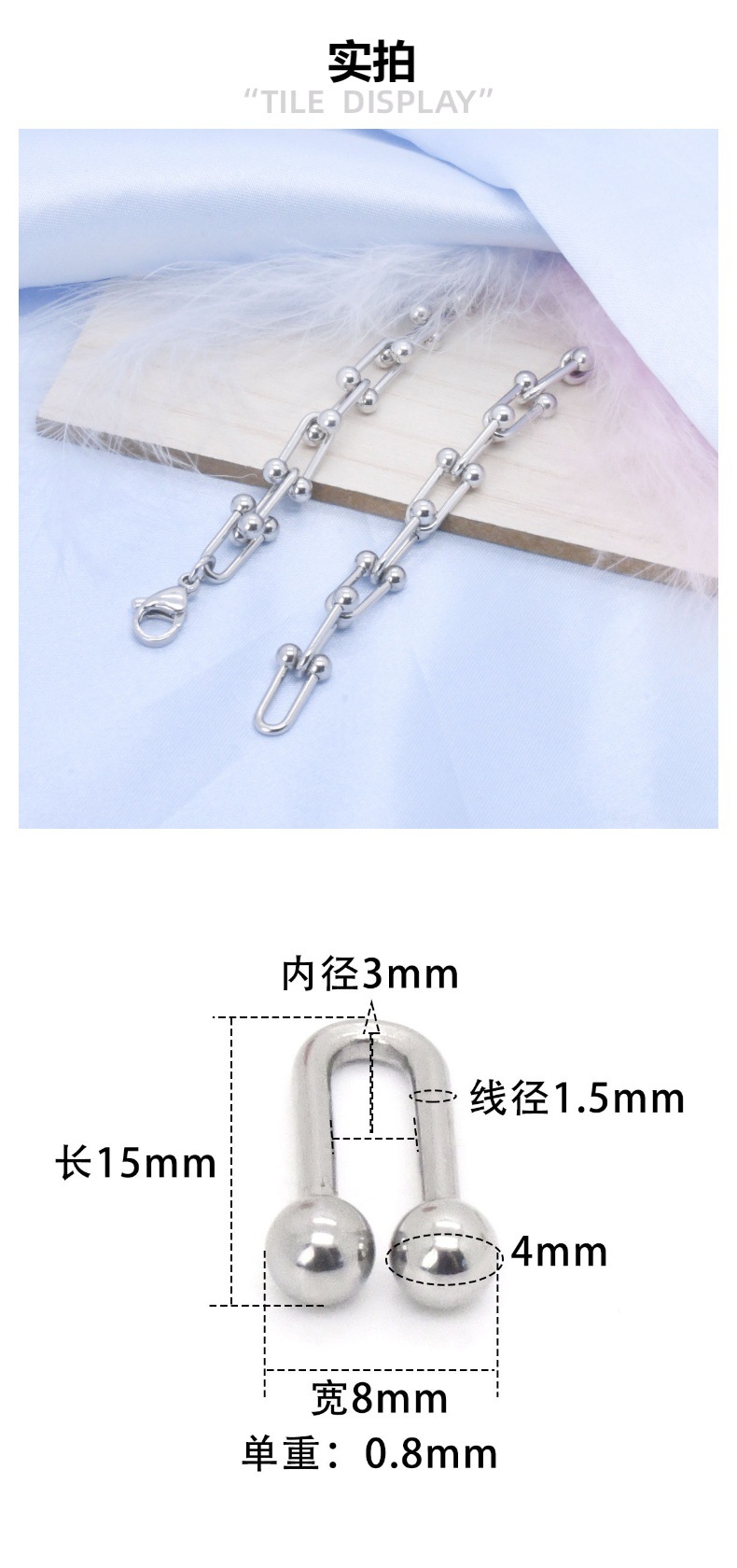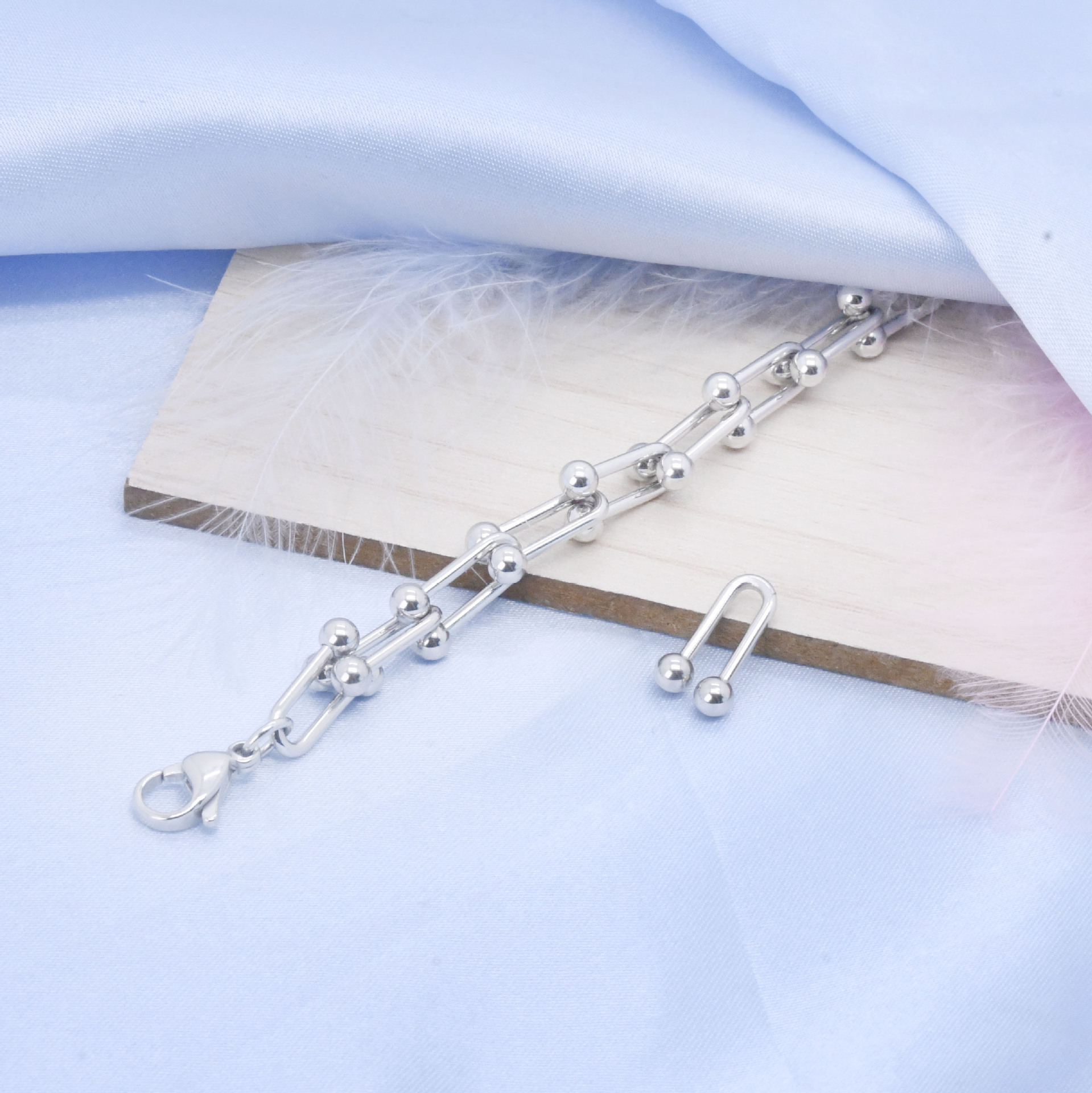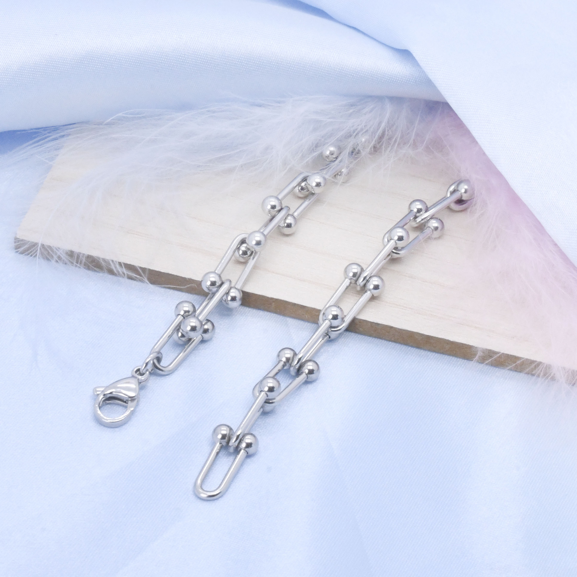 新款欧美简约不锈钢U型手链轻奢小众每节 可拆卸设计男女饰品批发 投诉