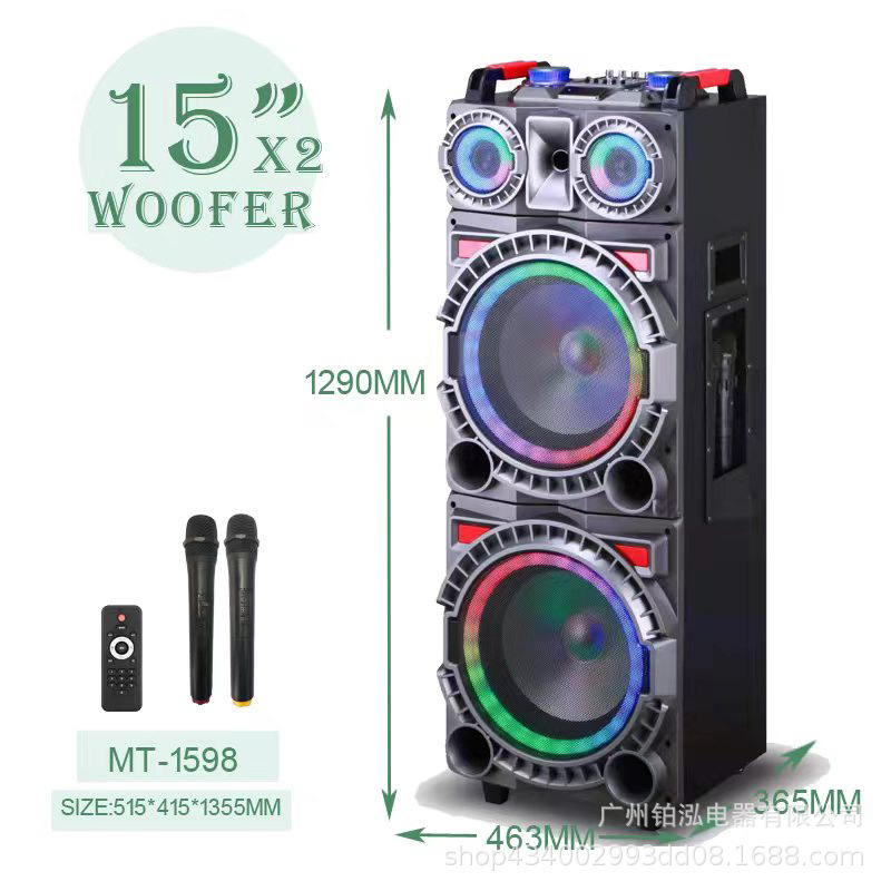 Dual 15-inch 120 magnetic speakers, 7 amp battery, dual wireless microphones, mixer EQ amplifier board. 120W.USB,TWS.SD card, with radio, with display, with recording/with large remote control with SONY lights