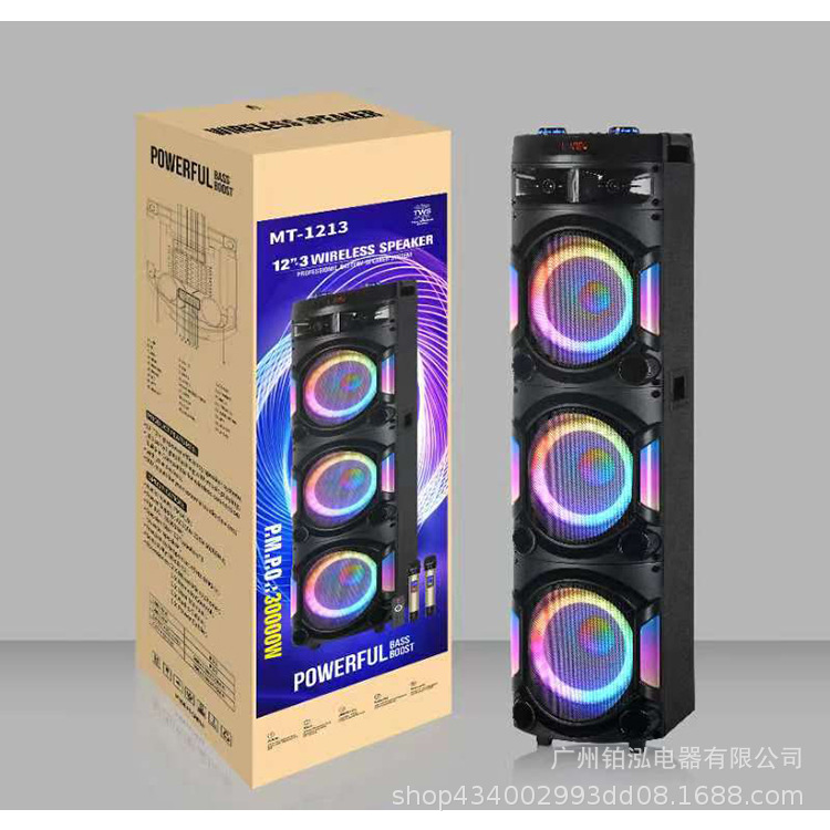Three 12 "100 magnetic 35-core speaker, 7 amp battery, wireless microphone with dual display, LED seven-color light amplifier board. 3116 chip.100W output. USB,TWS.SD card, with radio, with display, with recording/with large remote control.