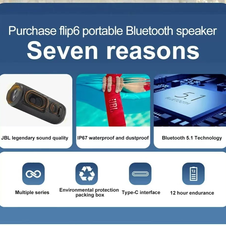 The beat goes on with the JBL Flip 6 2-way speaker system, engineered to deliver loud, crystal clear, powerful sound. Its racetrack-shaped woofer delivers exceptional low frequencies and midrange, while a separate tweeter produces crisp, clear high-frequencies. Flip 6 also features optimized dual passive radiators for deep bass, fine-tuned with using Harman's advanced algorithm.