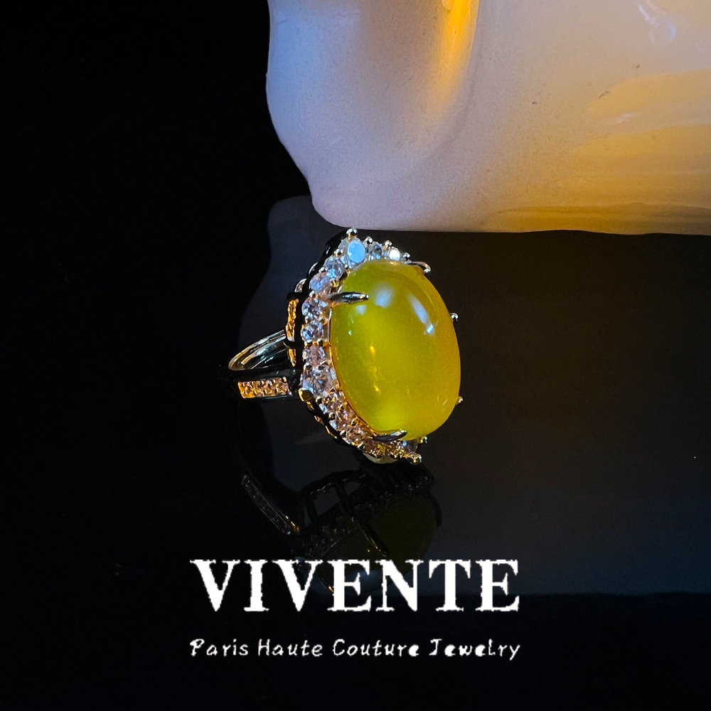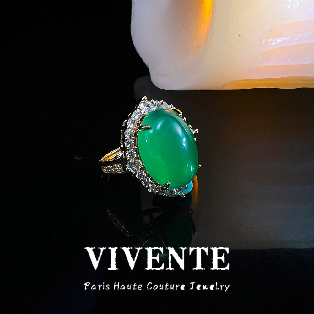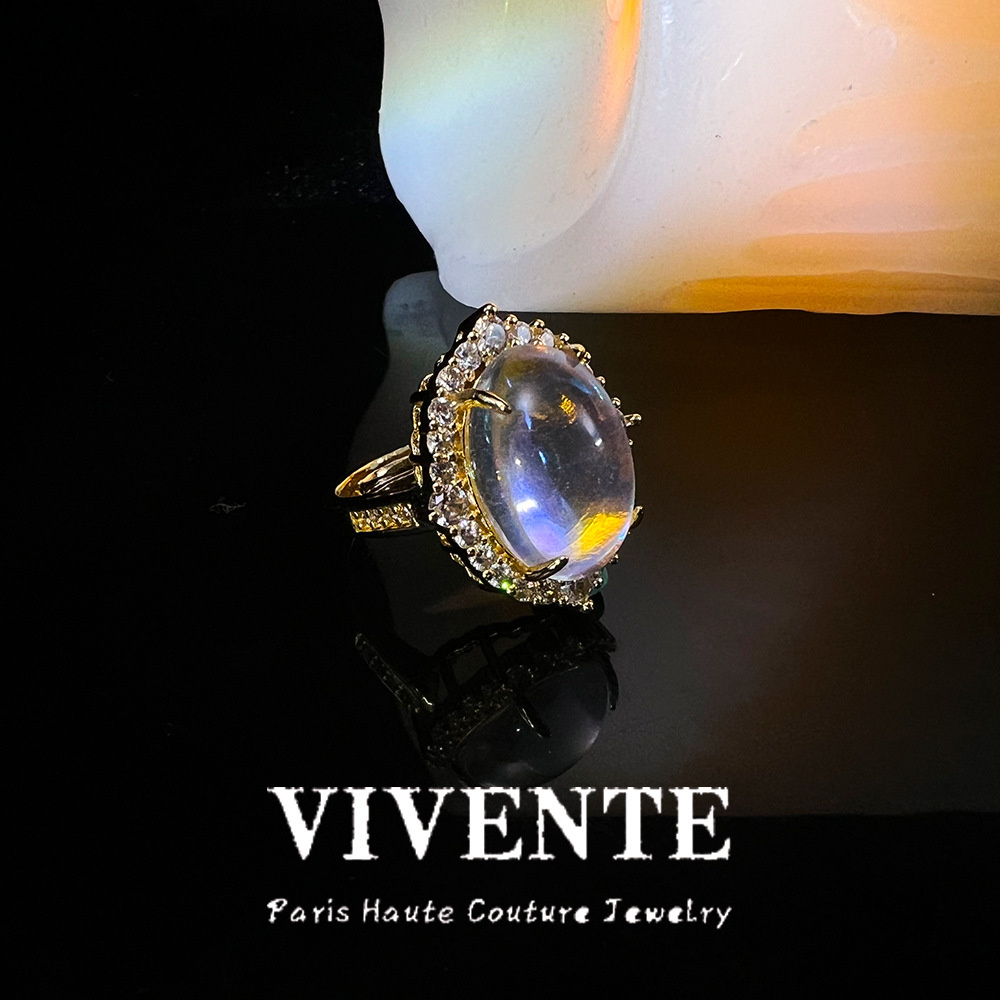 新中式铜镀真金玉髓戒指 轻奢高级复古月光石天然宝石开口圈戒指 投诉