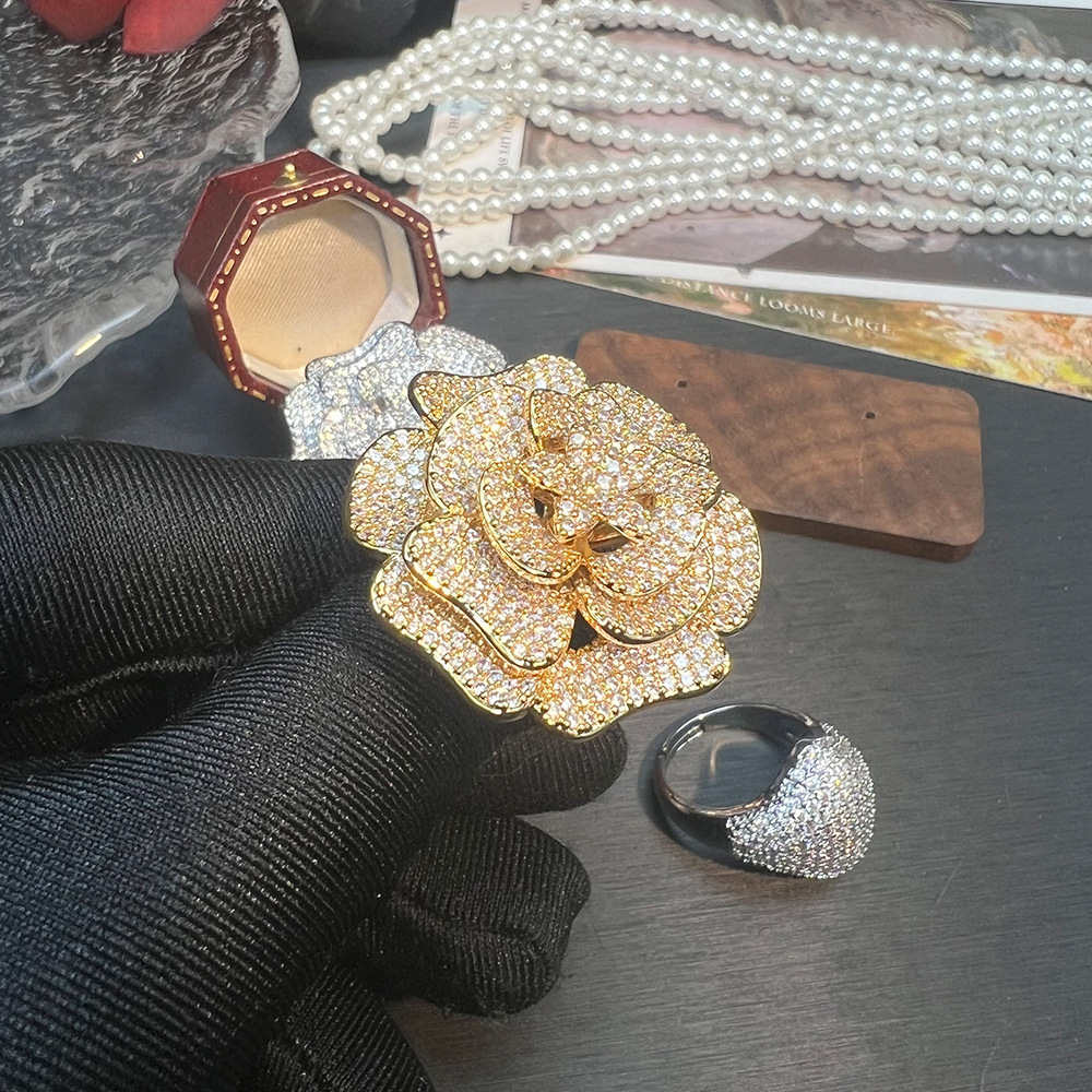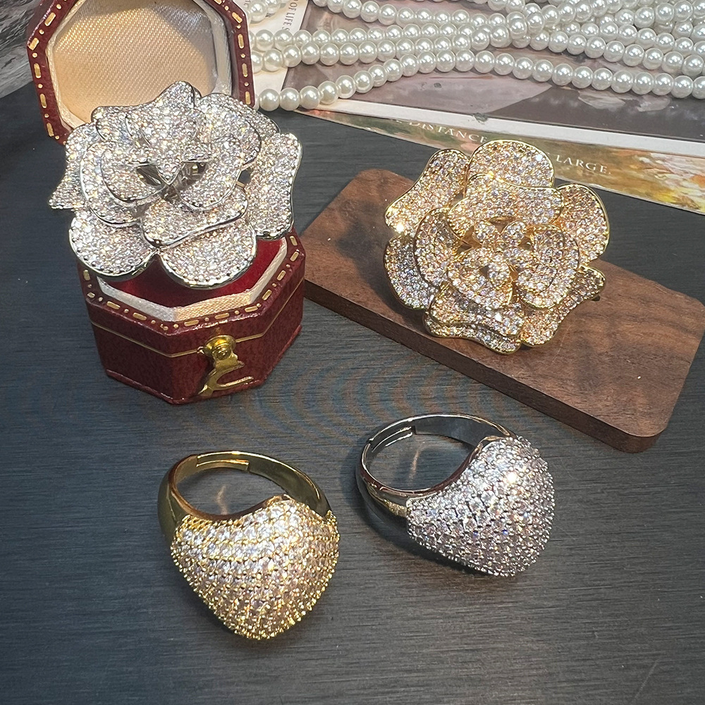 轻奢微镶重工大花朵戒指 精致小众设计感时尚欧美夸张跨境戒指女