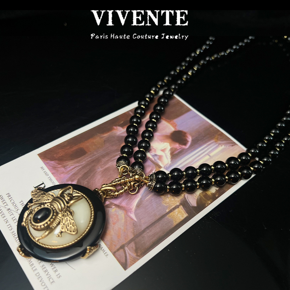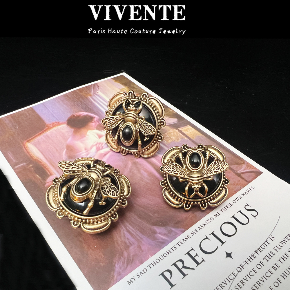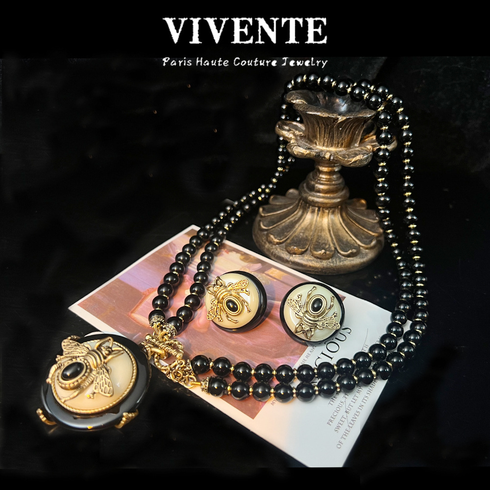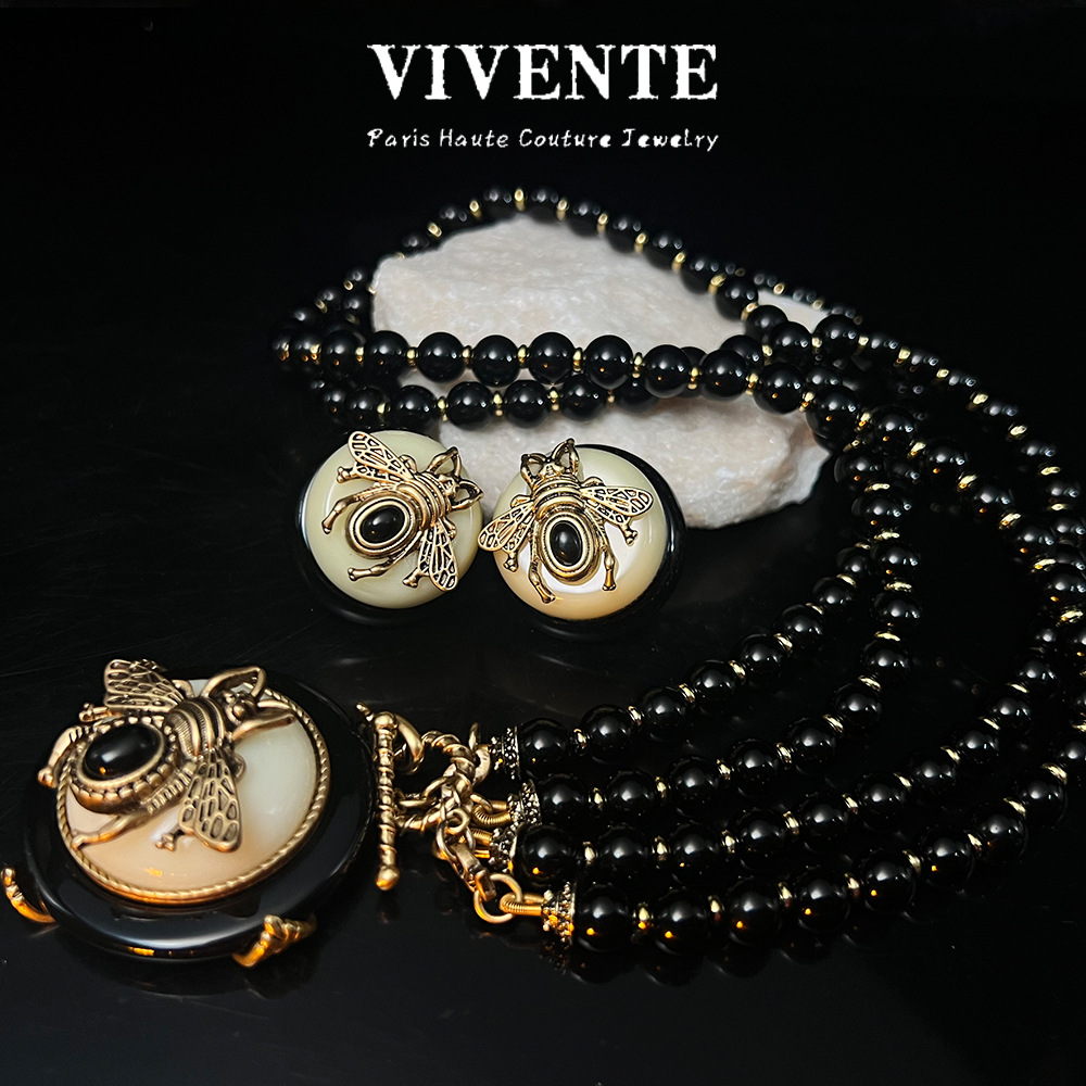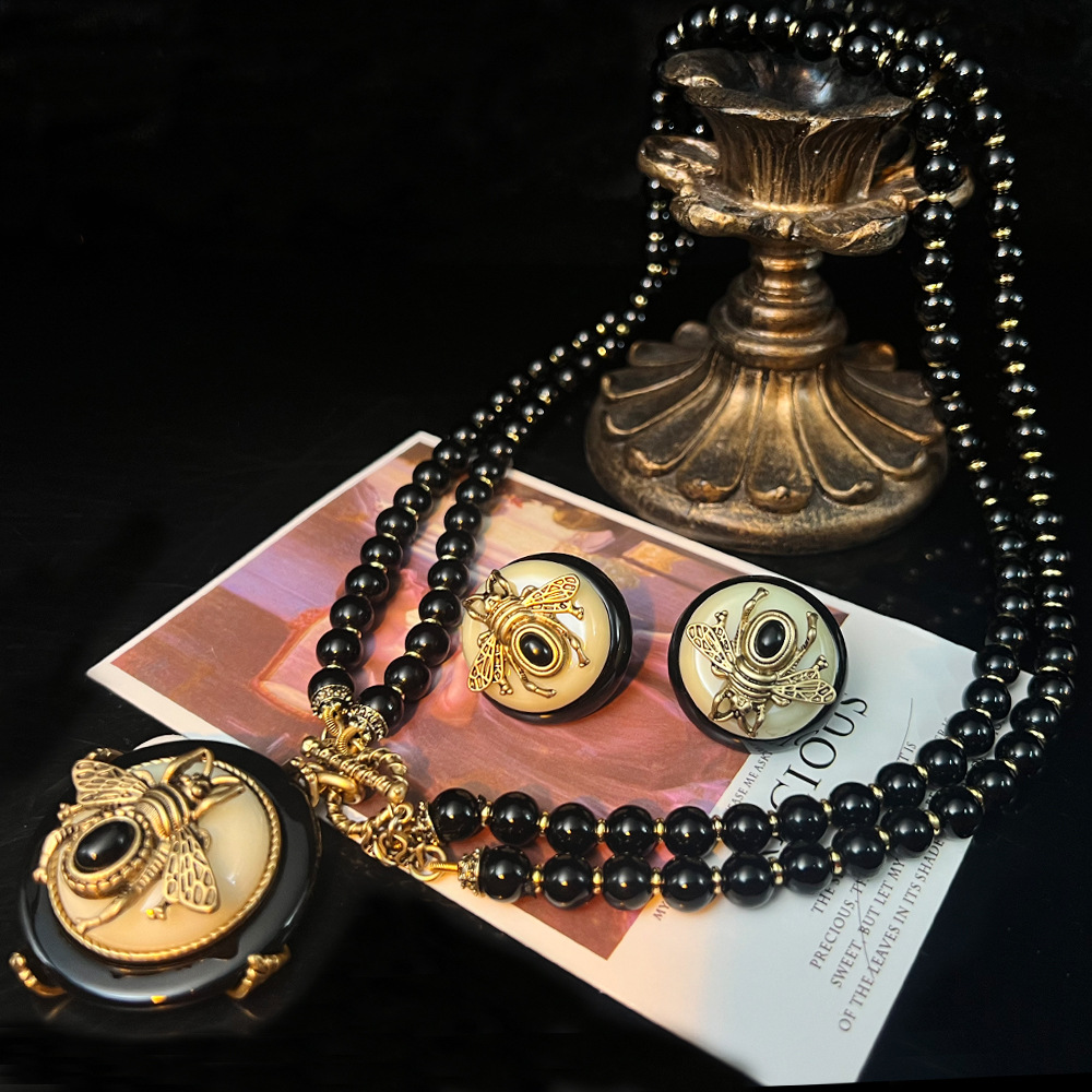 复古回流蜜蜂网红爆款首饰套装 vintage重工玛瑙高级感项链耳钉戒