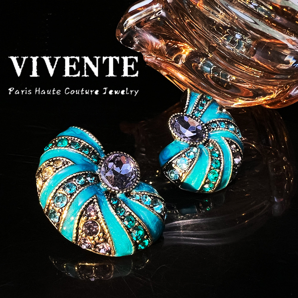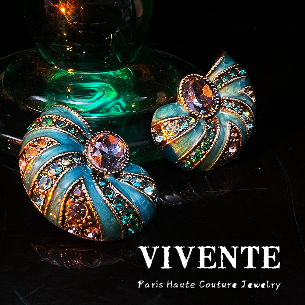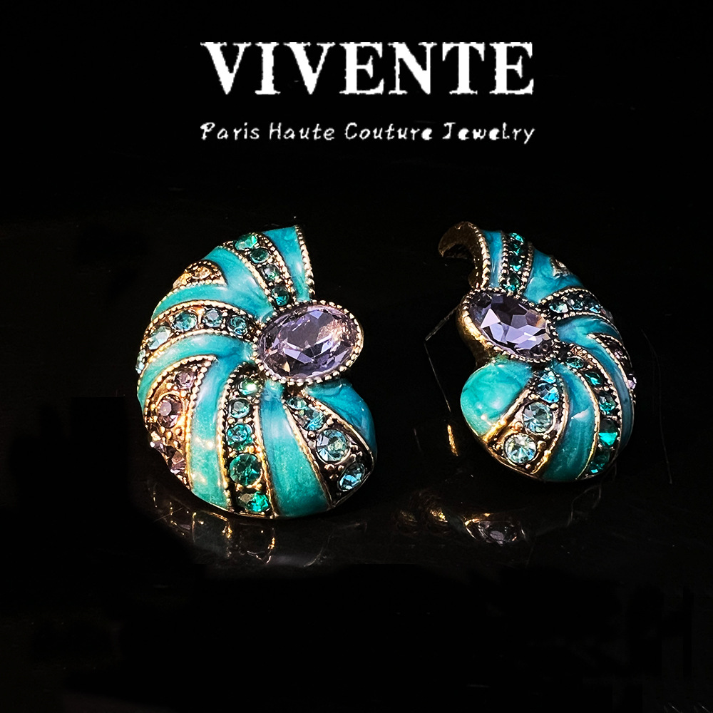 高定古董打标耳饰 海螺珐琅彩做旧西洋重工vintage高级中古耳环