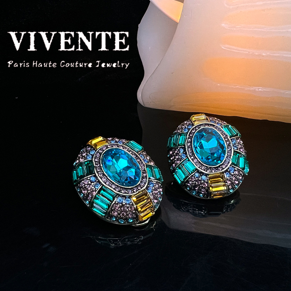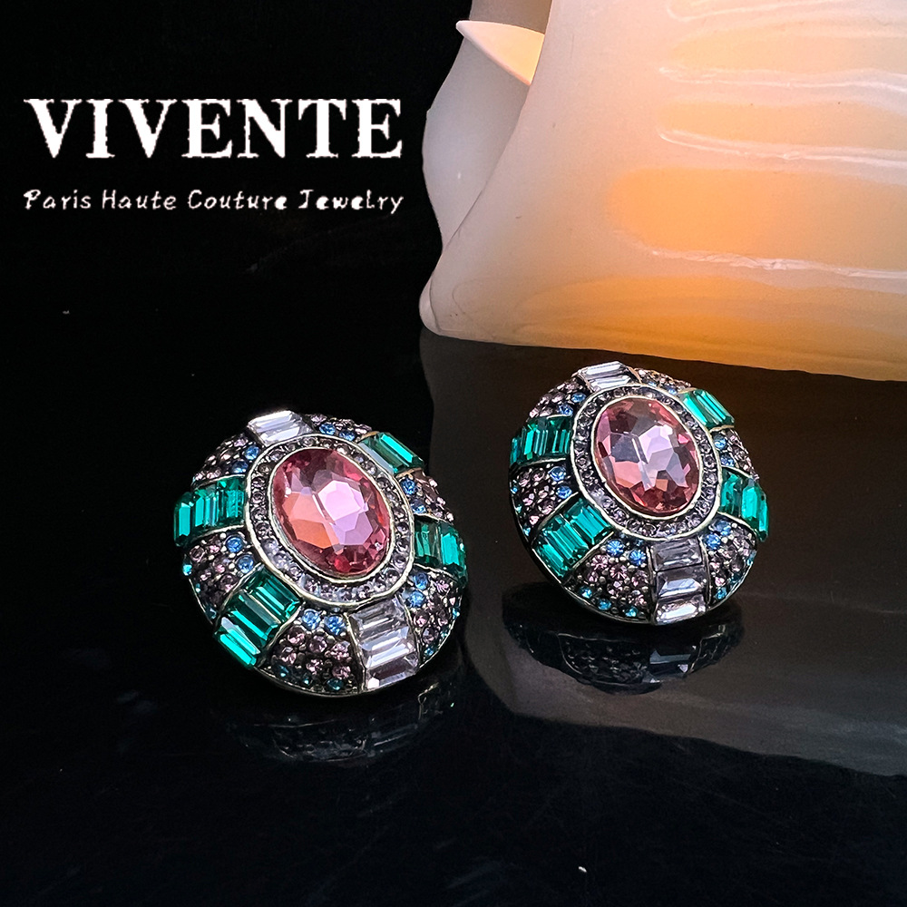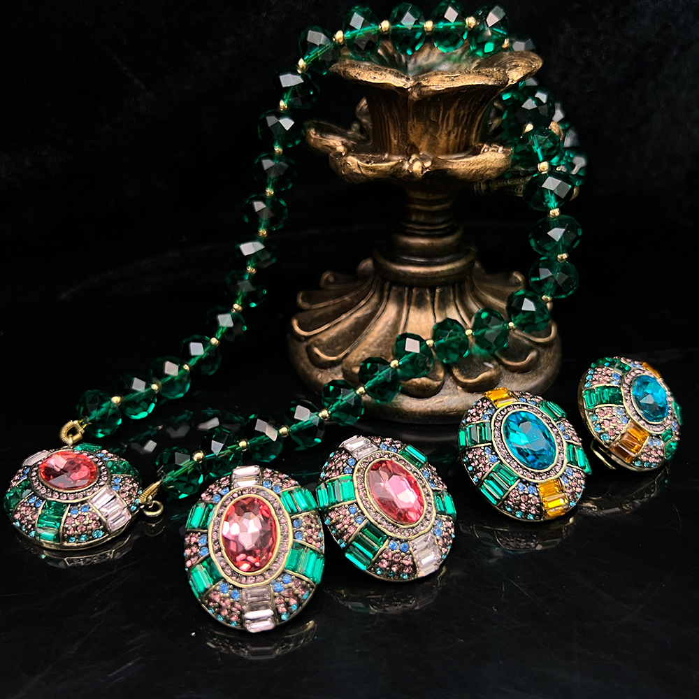高定耳钉 西洋古董vintage满锆石水晶贵气中古打标套装项链耳环