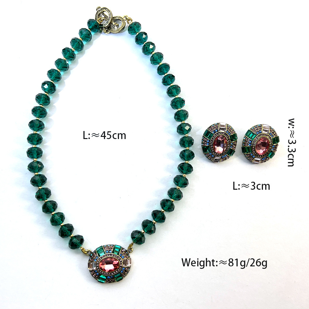 材质: 混合材质 处理工艺: 电镀 造型: 菱形 货号: XA44 -项链XB63 产地: 义乌 链子样式: 常规链 是否多层: 否 坠子材质: 水钻 周长: 31cm(含)-40cm(含) 颜色: 项链,红耳钉,绿色耳钉 有可授权的自有品牌: 是 是否跨境出口专供货源: 是 流行元素: 线条 上市年份/季节: 2023年冬季 风格: 复古 重量: 61 风格分类: 文艺复古 主要销售地区: 其他 适用人群: 女式 流行元素分类: 几何 重量: 0.5 kg/条