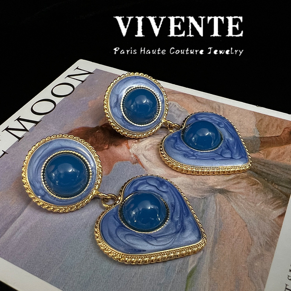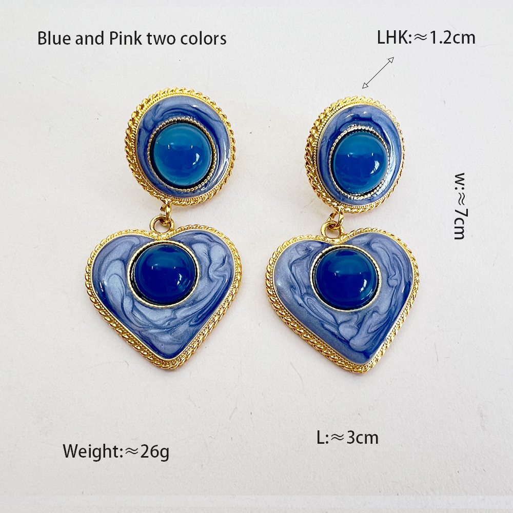 中古风耳饰 高级感爱心炫彩珐琅琉璃镀真金vintage复古新中式耳环 投诉