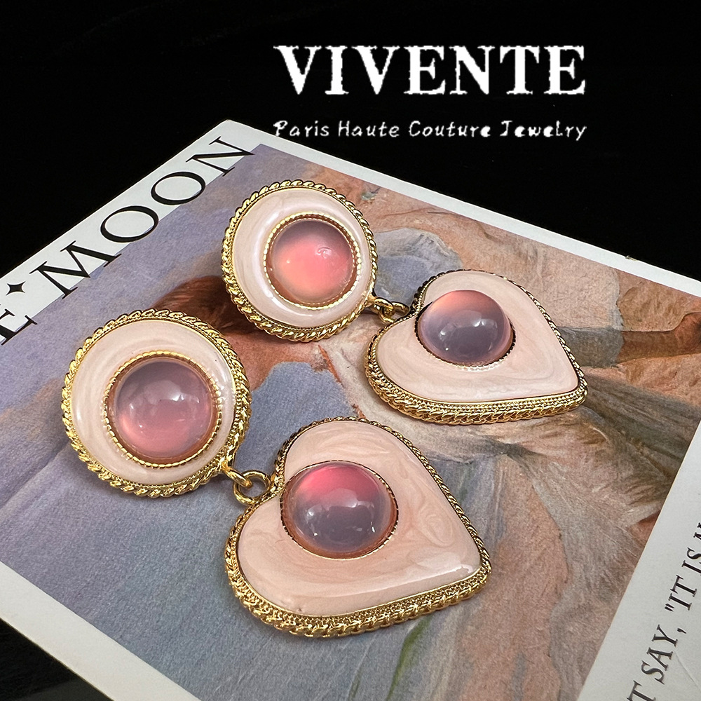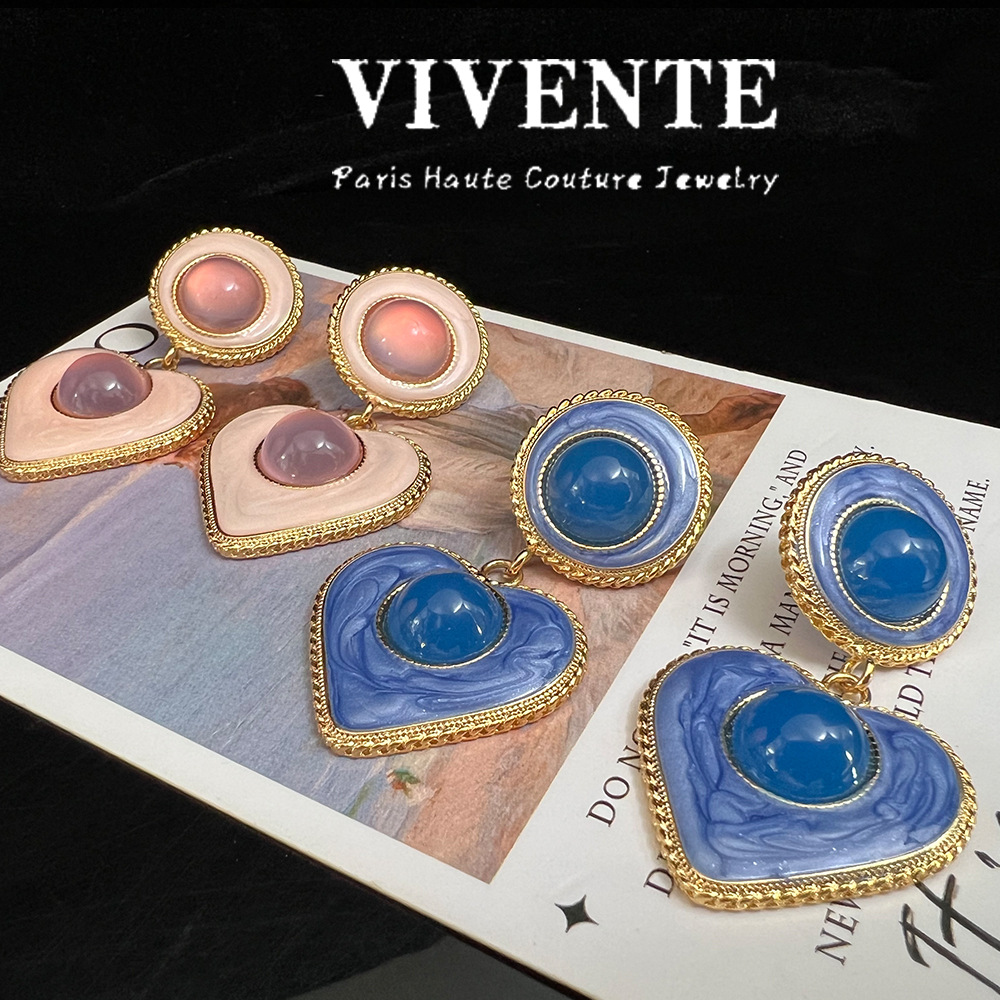 中古风耳饰 高级感爱心炫彩珐琅琉璃镀真金vintage复古新中式耳环