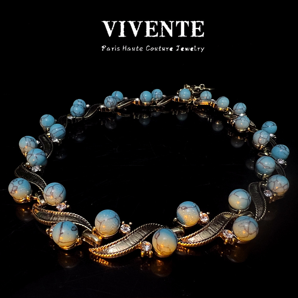 绿松石做旧首饰套装vintage复古西洋古董ins跨境热销锁骨链耳钉批