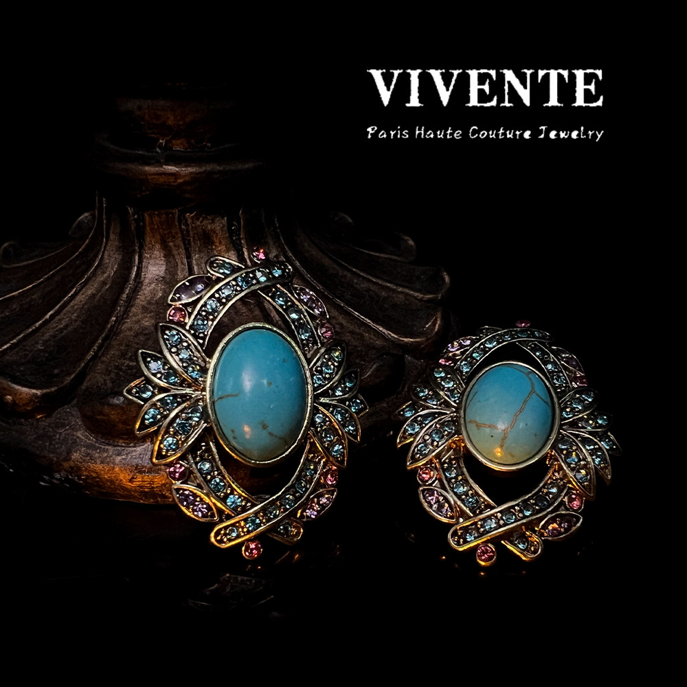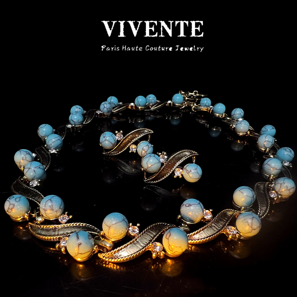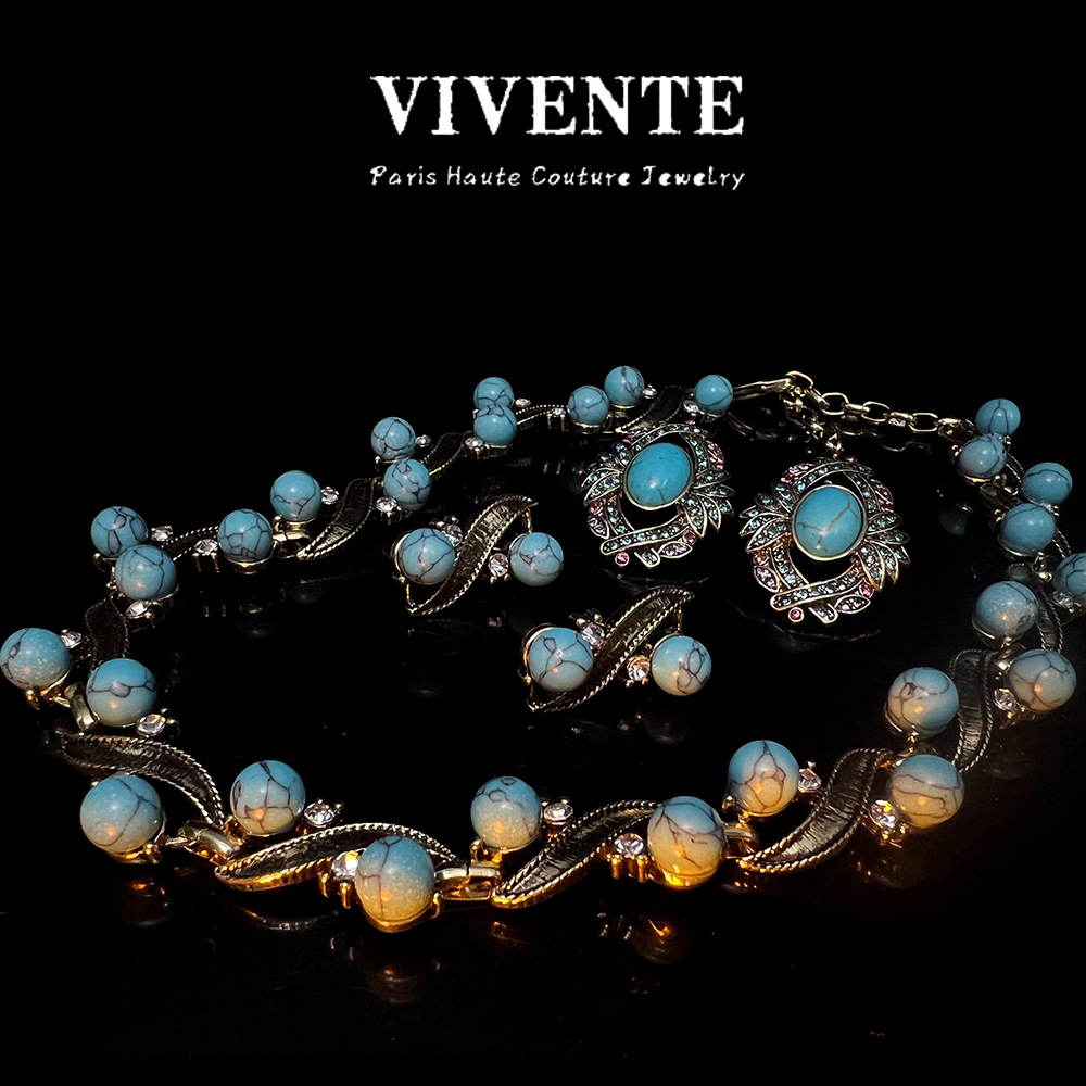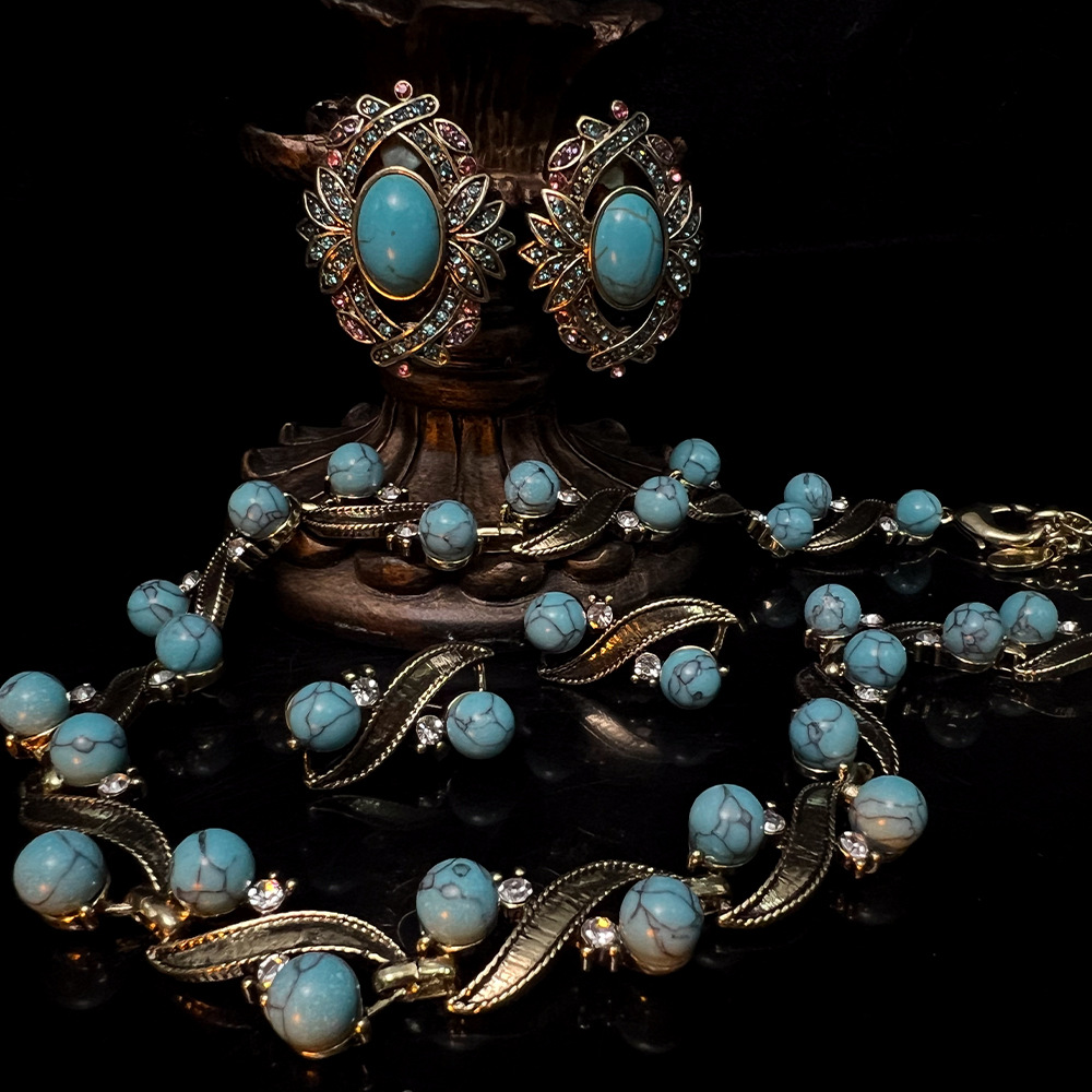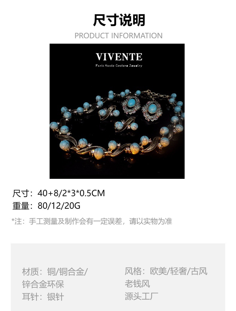 绿松石做旧首饰套装vintage复古西洋古董ins跨境热销锁骨链耳钉批 投诉