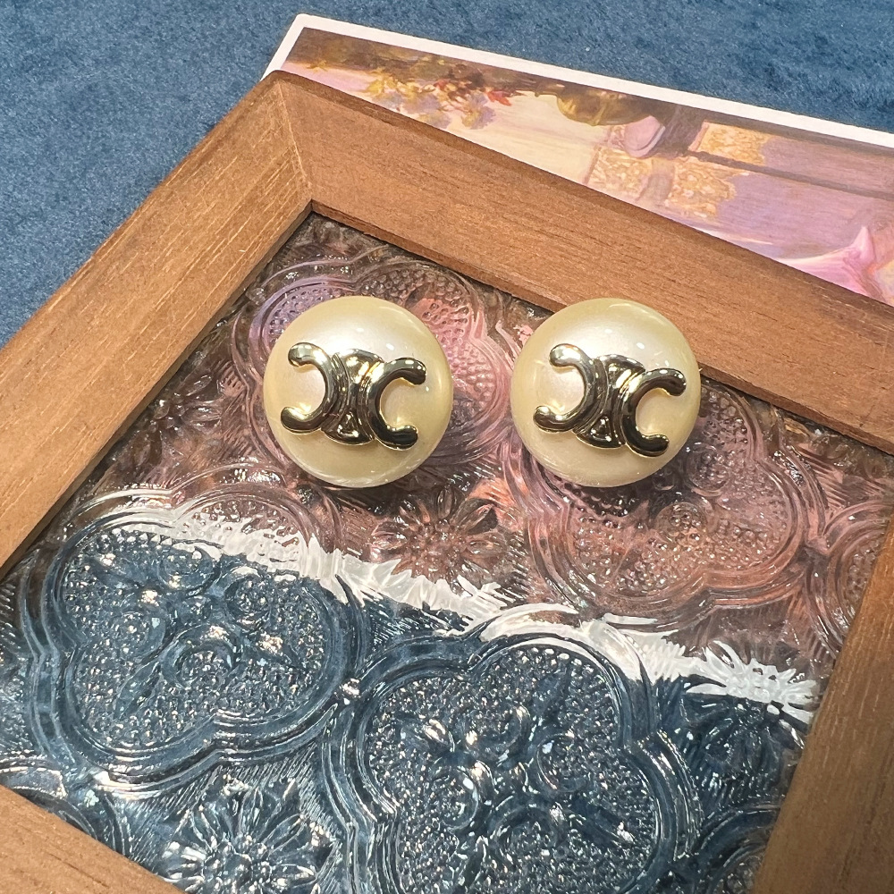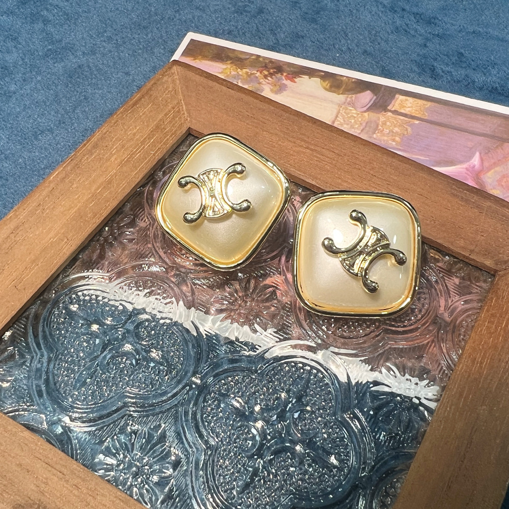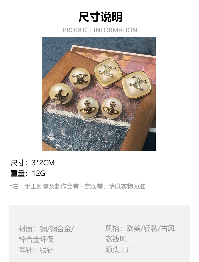 琳家时尚中古风椭圆形耳钉 凯旋门字母亚克力西太后S925耳饰批发 投诉