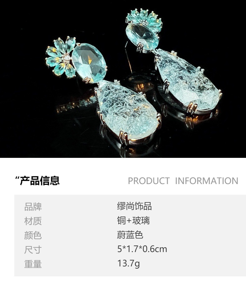 原创5A高定海冰蓝钻 跨境热销走秀款高级质感切面锆石精致耳饰