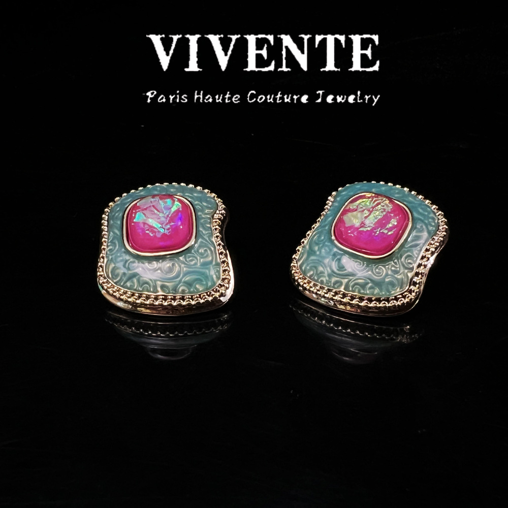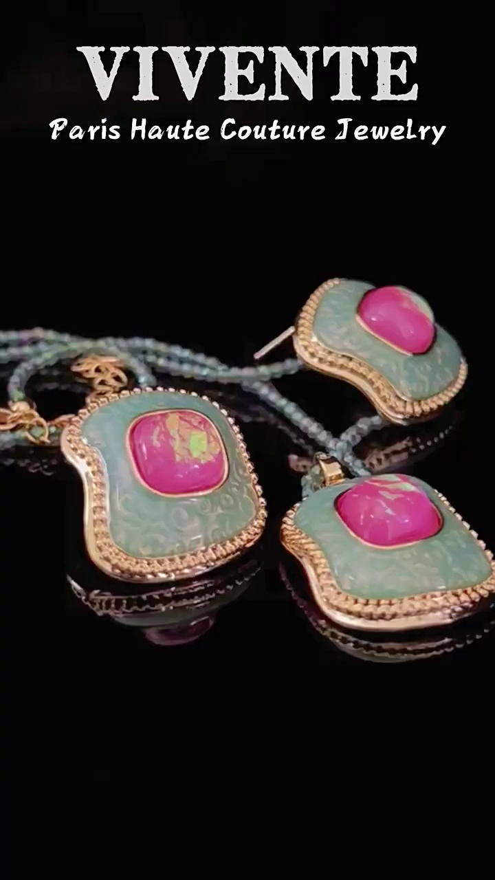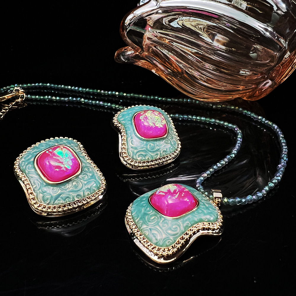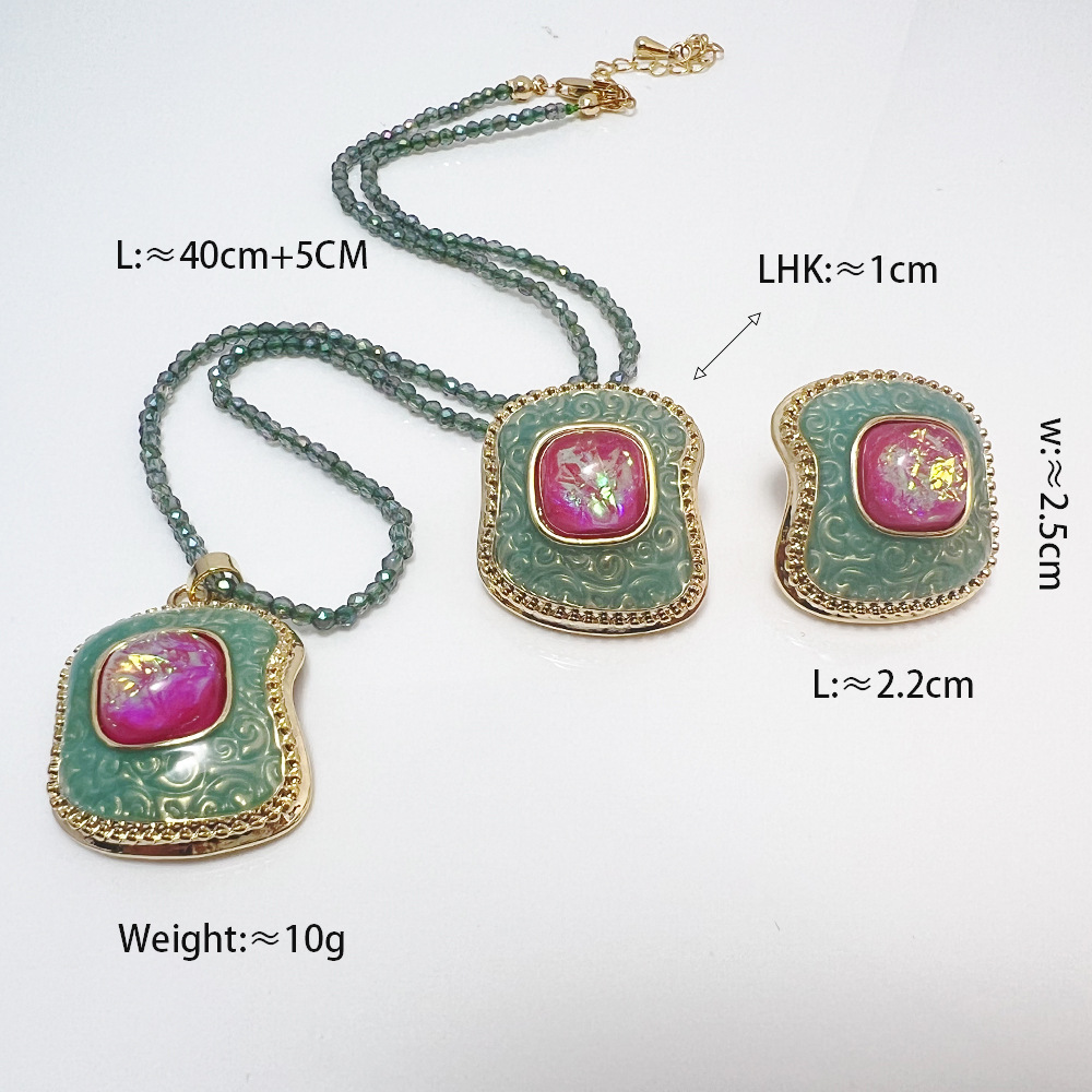 法式珐琅饰品 vintage复古炫彩高级感小众百搭米珠水晶项链耳钉批 投诉