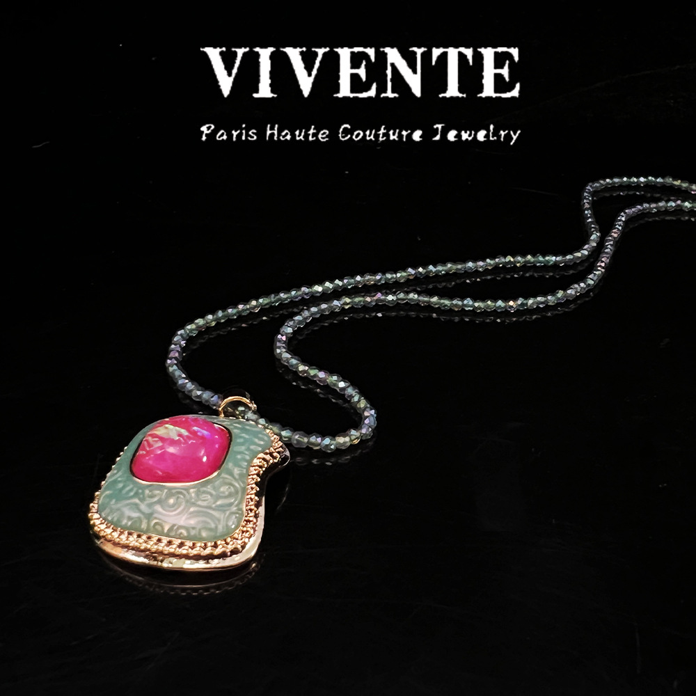 法式珐琅饰品 vintage复古炫彩高级感小众百搭米珠水晶项链耳钉批