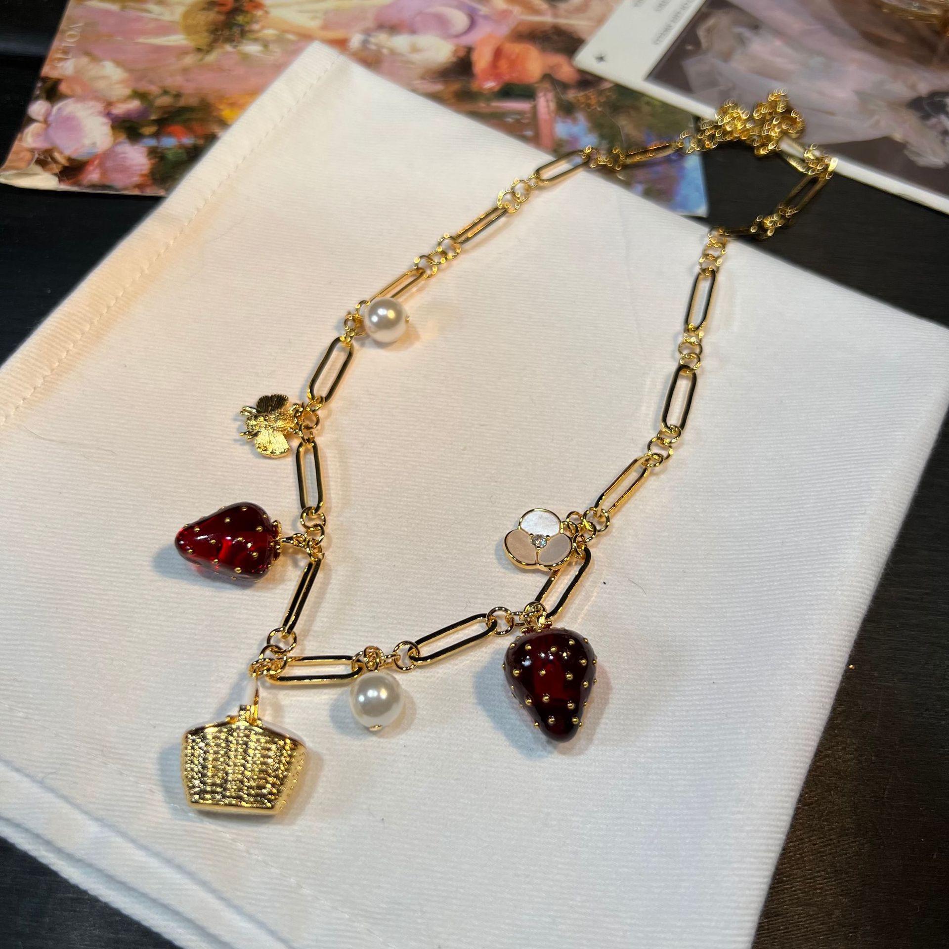 KS新款草莓手链 小众ins铜镀真金质感水果高定打标多巴胺项链耳钉 投诉
