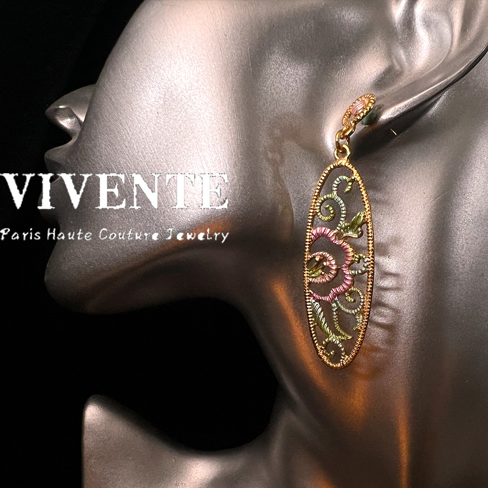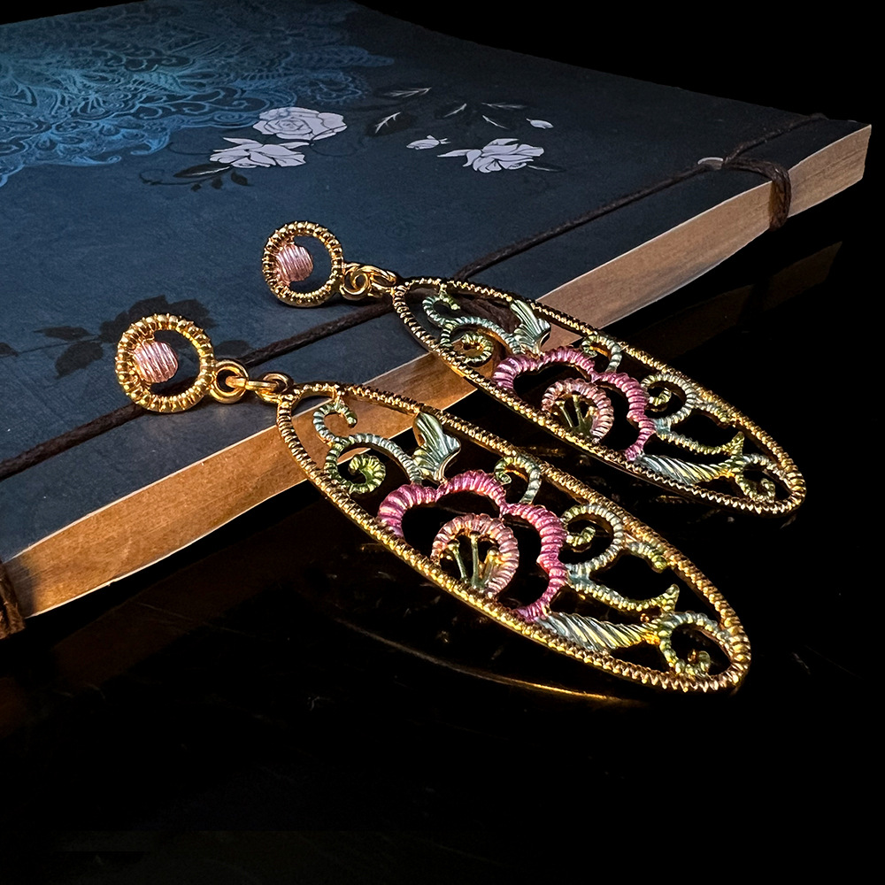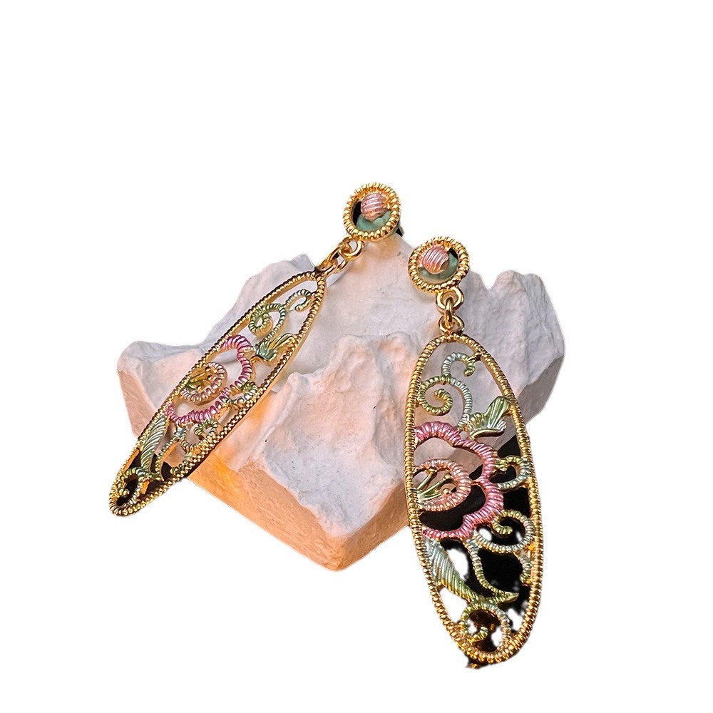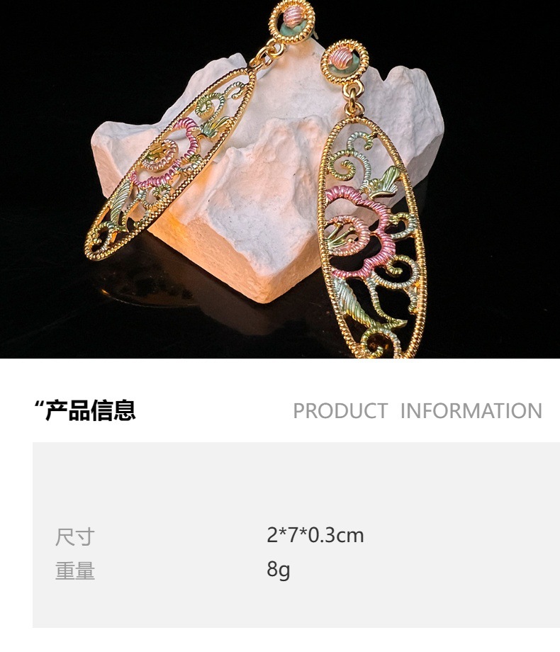 新中式耳饰镂空长款耳坠 古典优雅气质国朝真金S925高级国风耳环