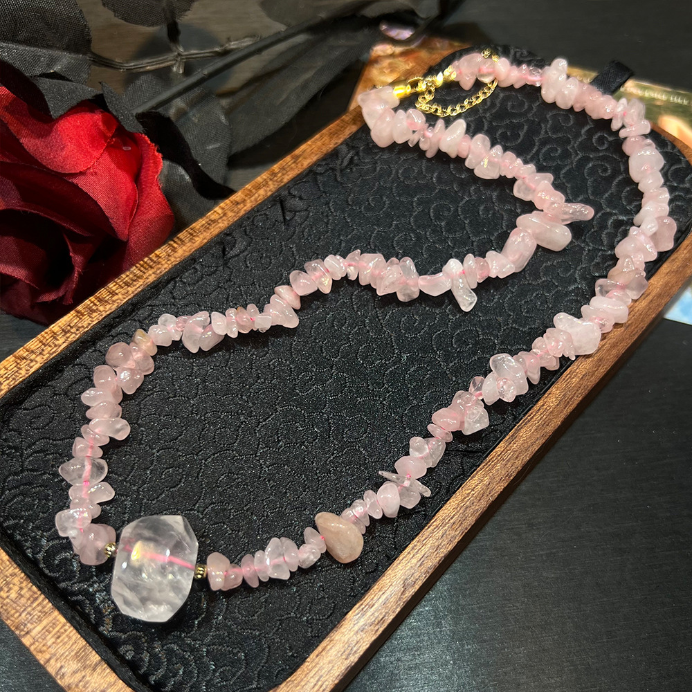 粉水晶碎石优雅百搭项链新中式粉晶紫水晶项链小众百搭手链批发女