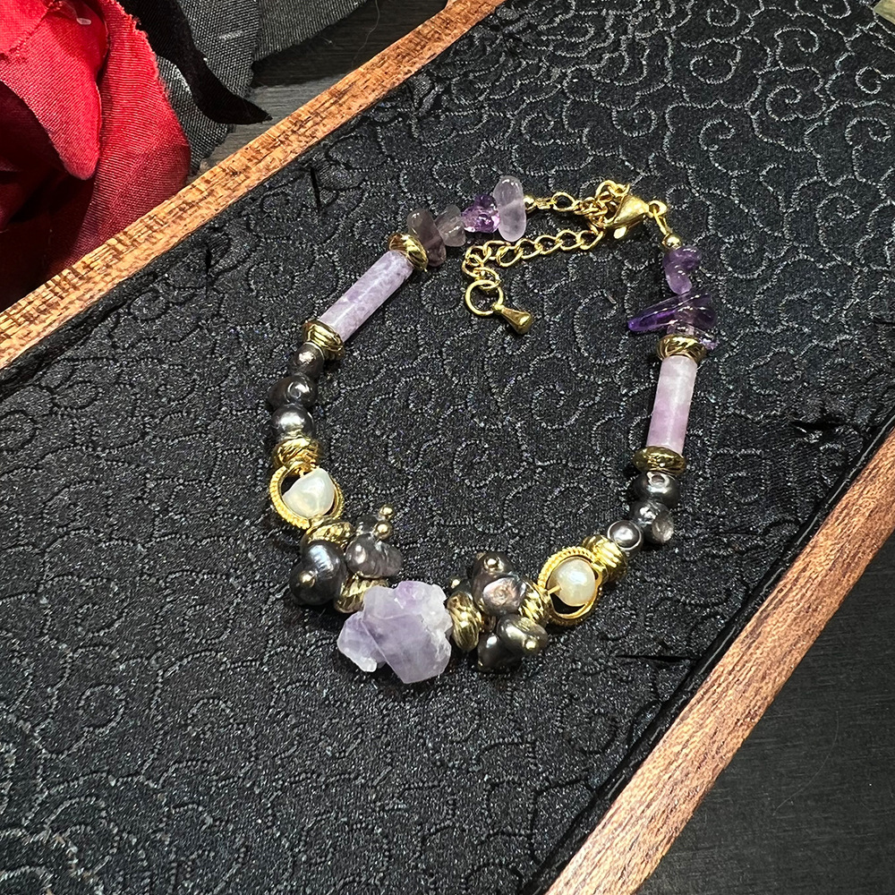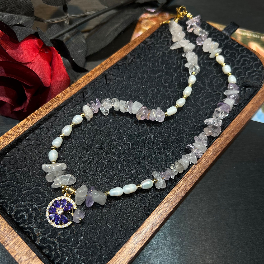 粉水晶碎石优雅百搭项链新中式粉晶紫水晶项链小众百搭手链批发女 投诉