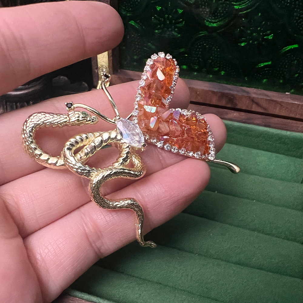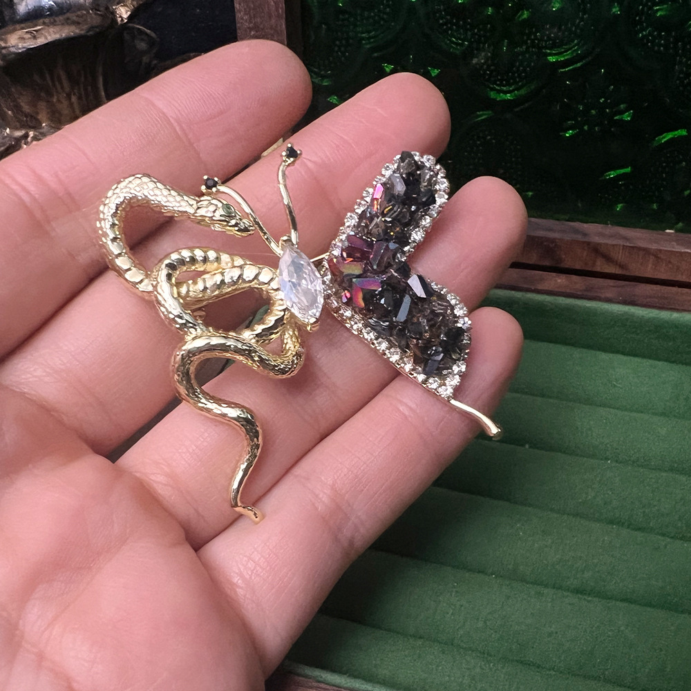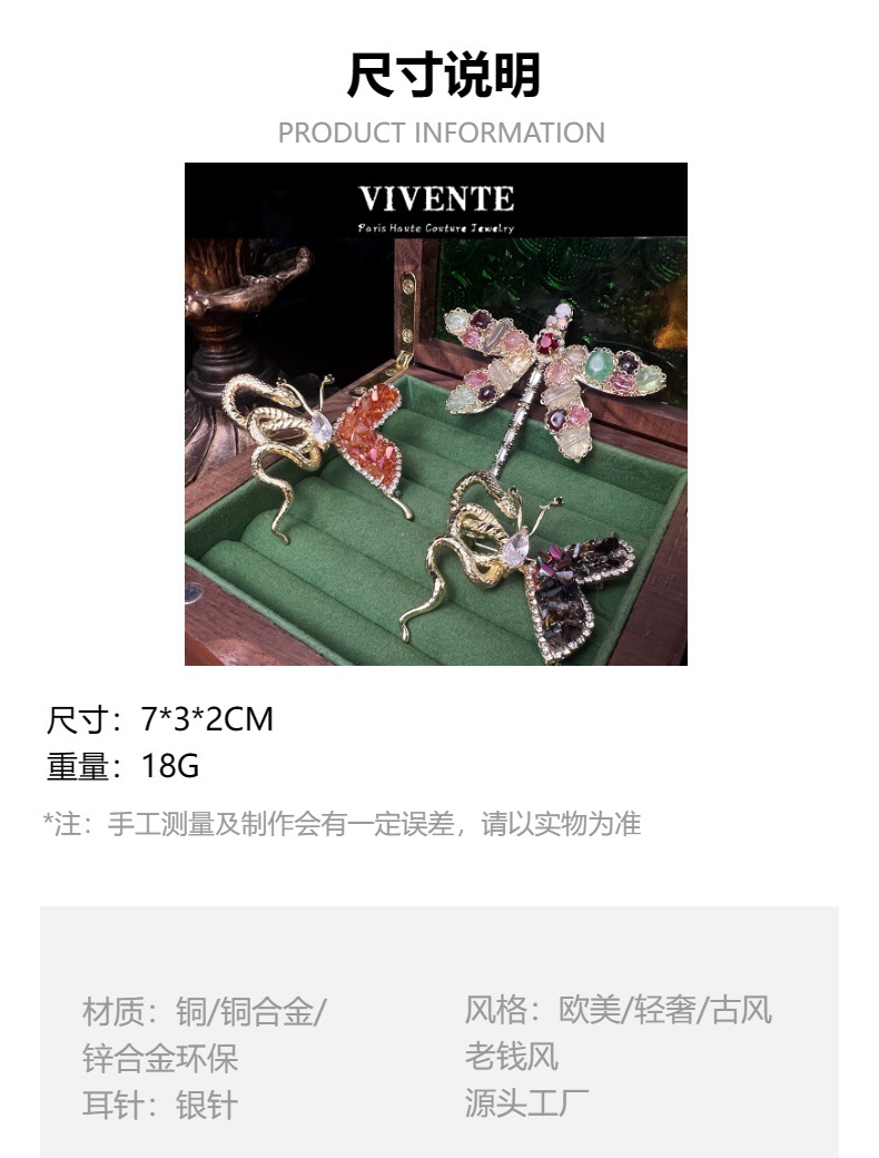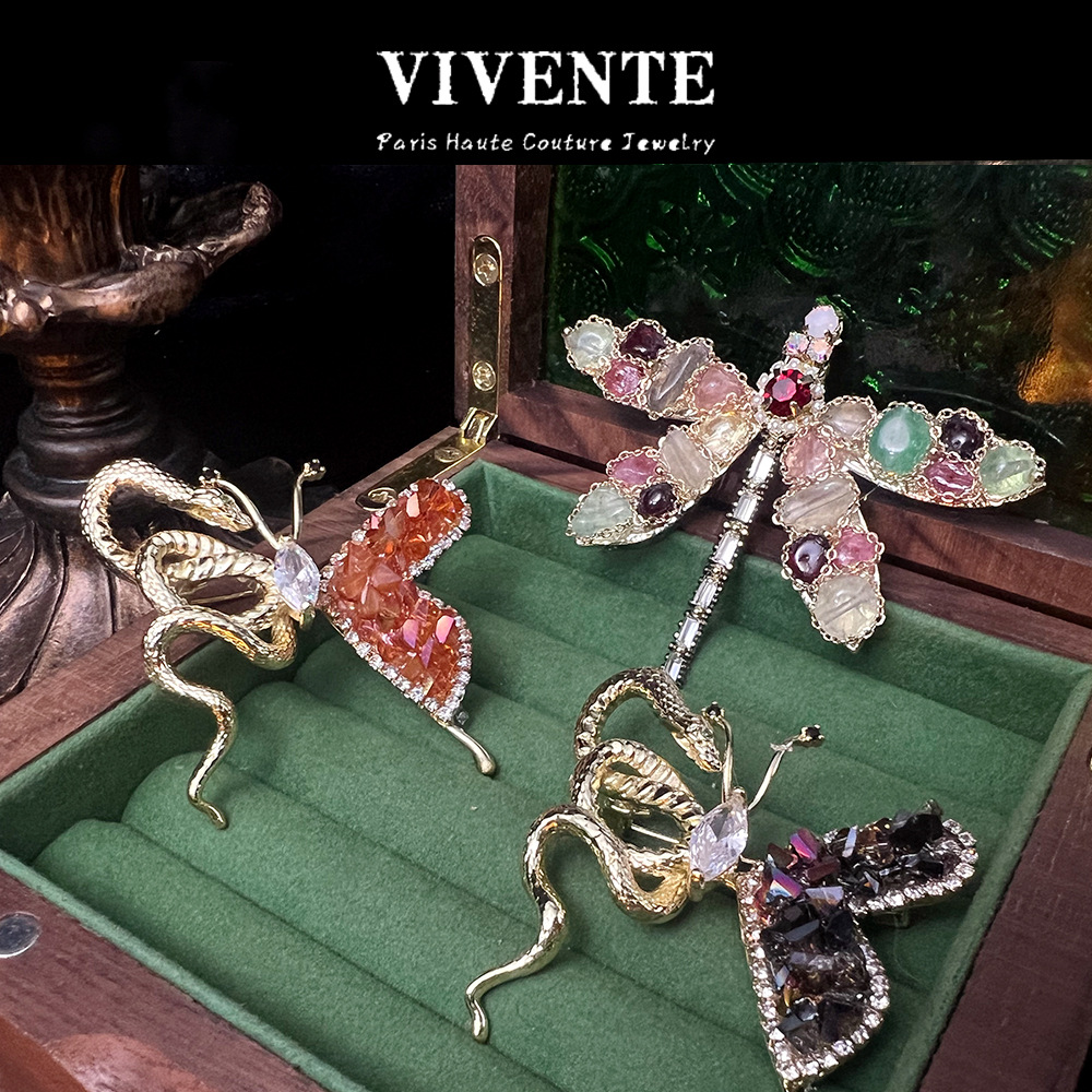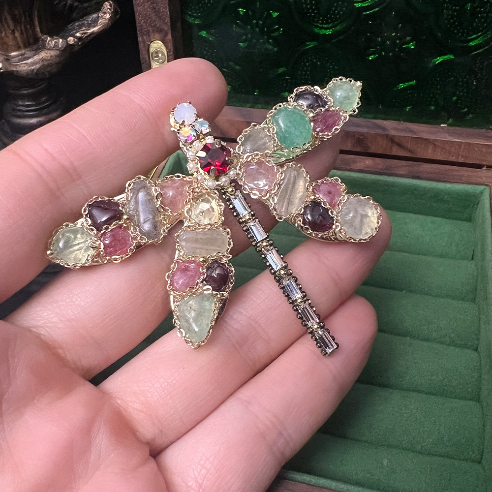 法式手工天然石水晶蜻蜓蛇骨蝴蝶 彩宝vintage复古高级感胸针批发 投诉