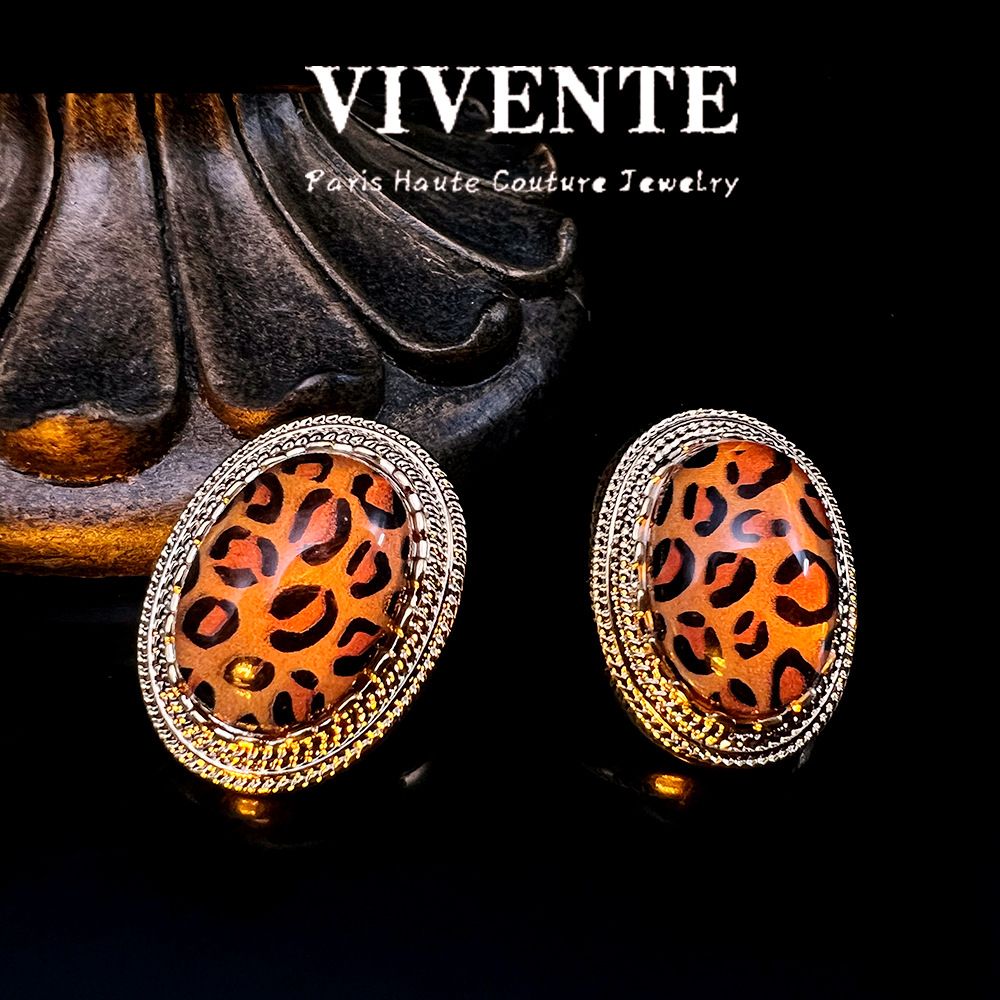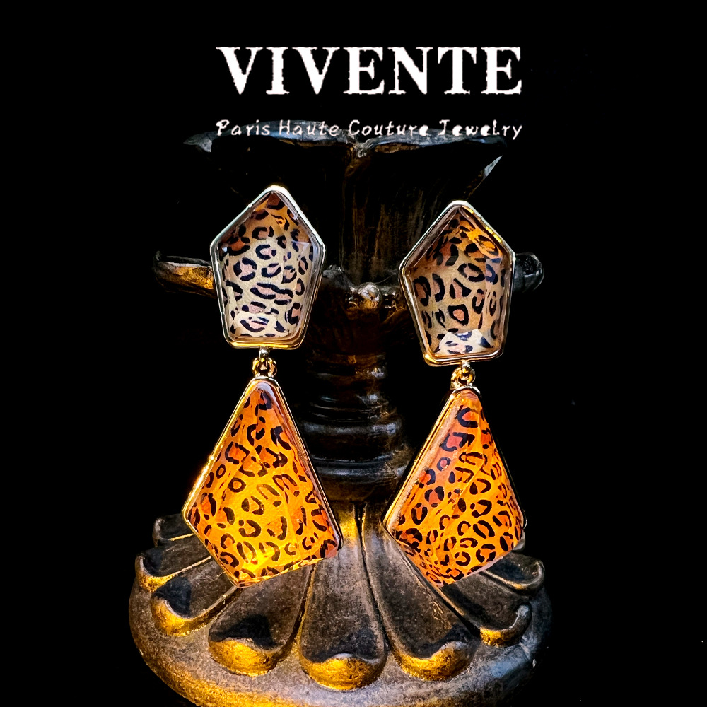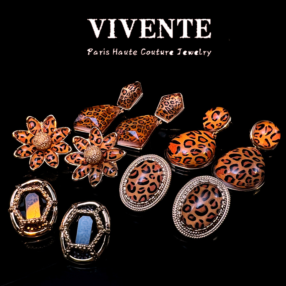 美式复古豹纹个性小众设计感时尚高级感树脂百搭气质辣妹耳饰批发