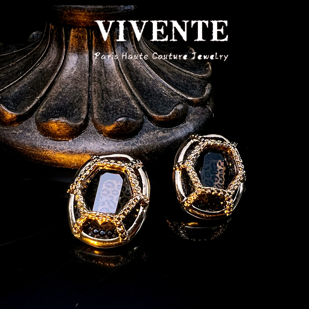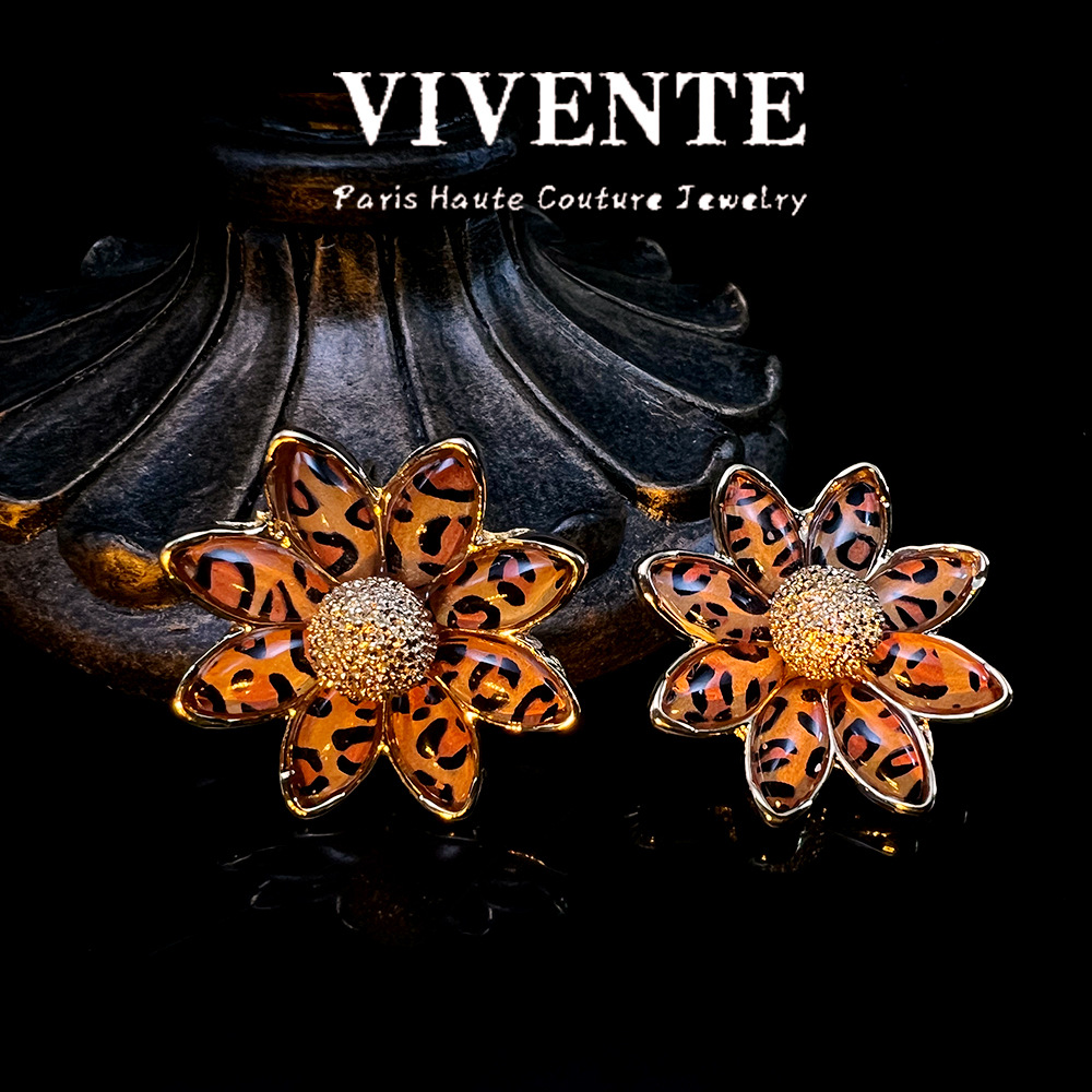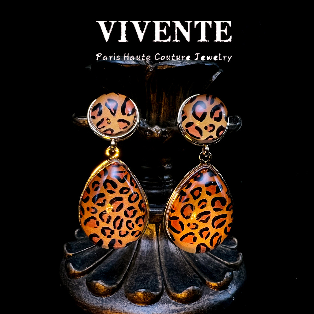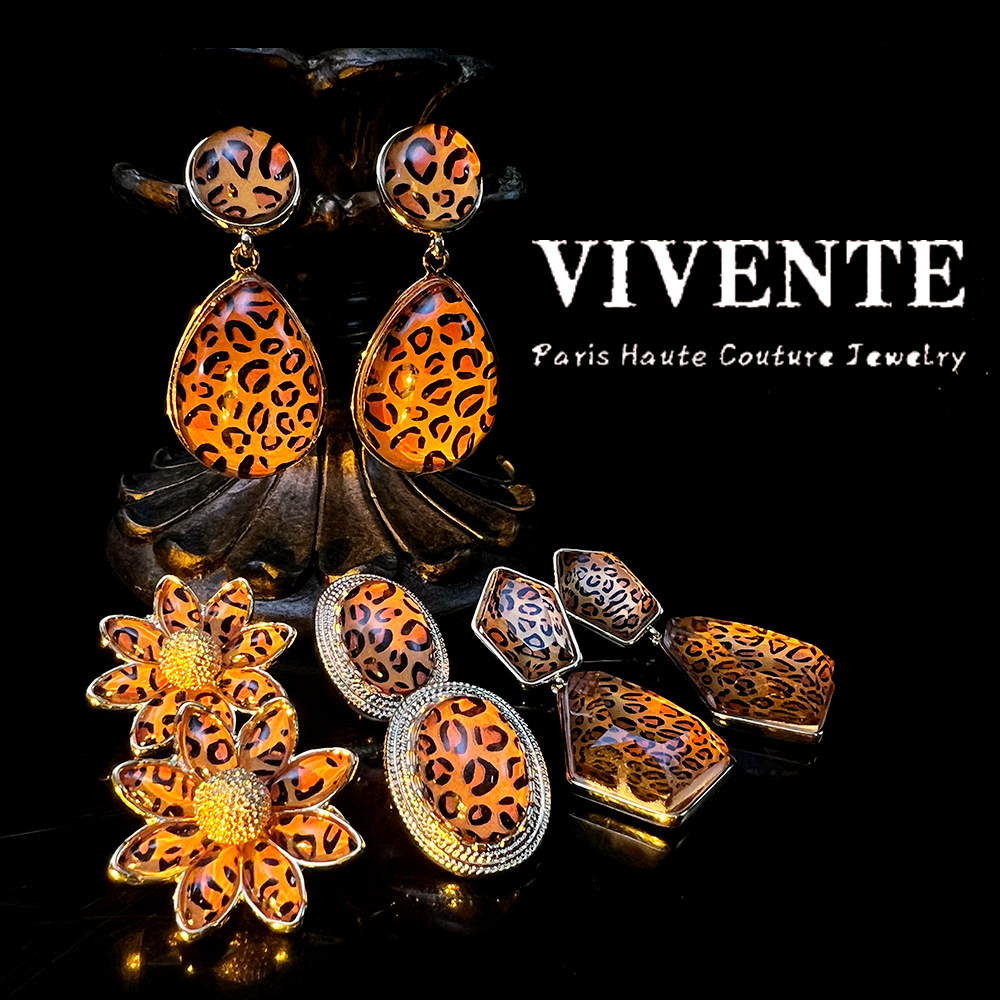 美式复古豹纹个性小众设计感时尚高级感树脂百搭气质辣妹耳饰批发