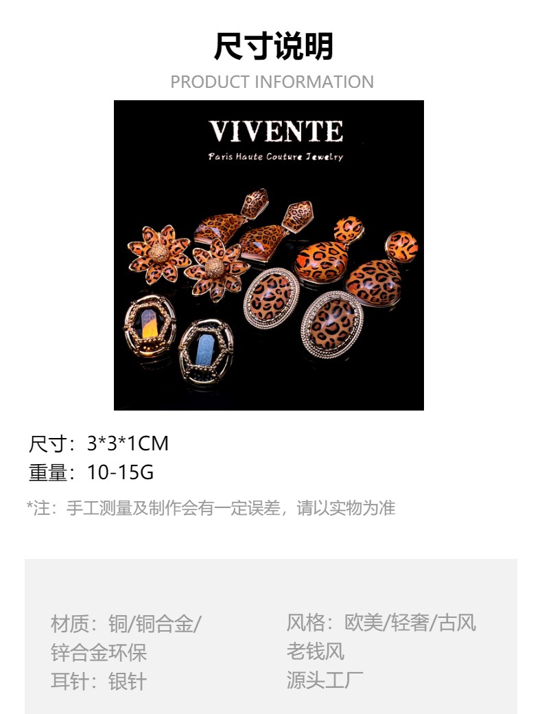 美式复古豹纹个性小众设计感时尚高级感树脂百搭气质辣妹耳饰批发 投诉