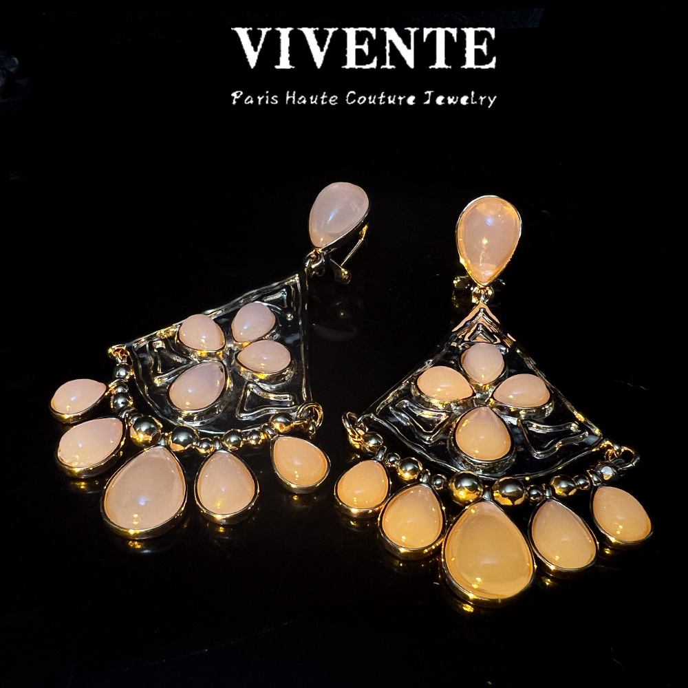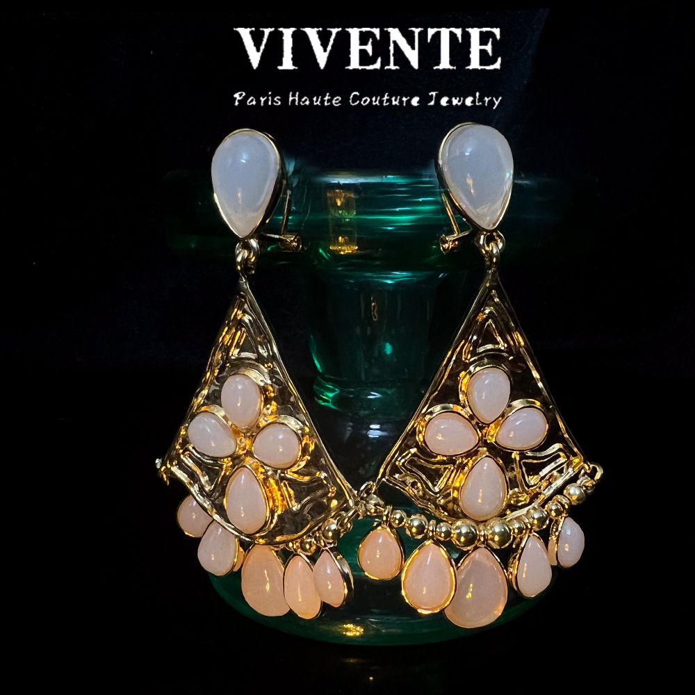 欧美跨境原单扇形天然石耳坠古森古董vintageS925中古风耳饰批发