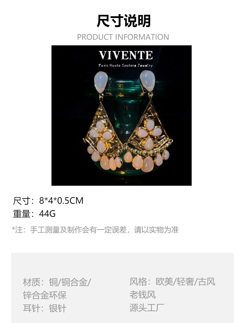 欧美跨境原单扇形天然石耳坠古森古董vintageS925中古风耳饰批发 投诉