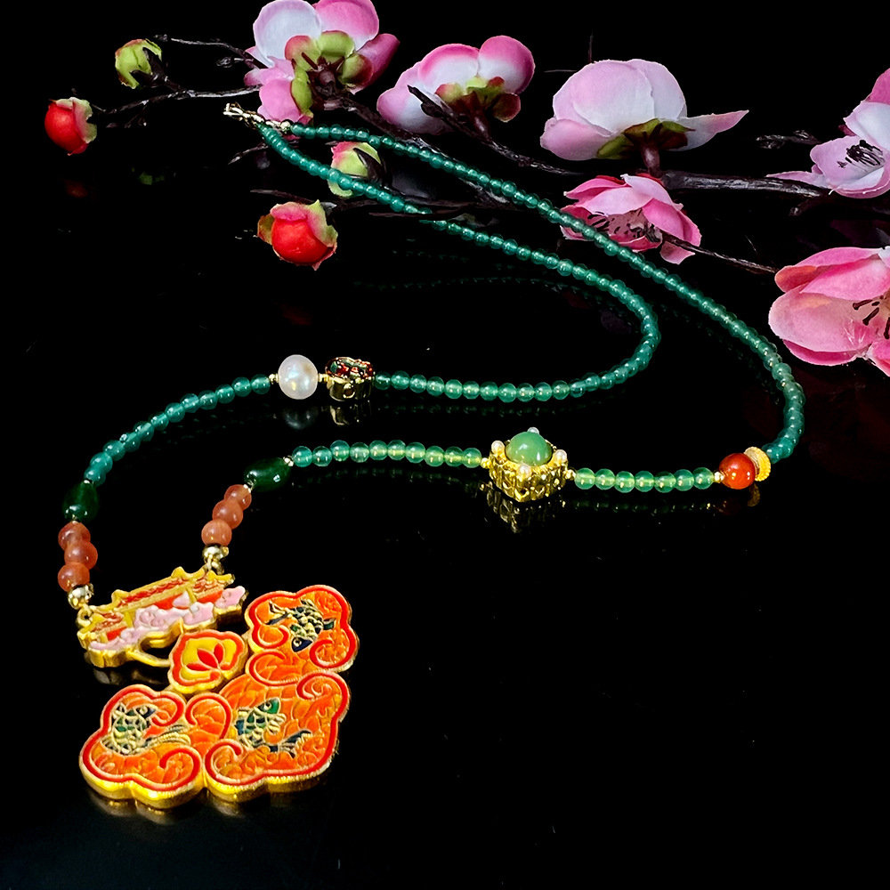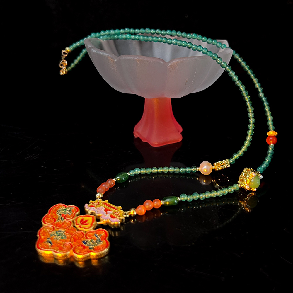 原创高端天然玛瑙猫眼石淡水珍珠沙金滴油项链 国风琉璃玛瑙耳环 投诉