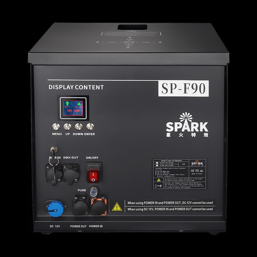 SP-F90是SPARK星火特效针对高端演出市场研发的一款防水喷火机,其喷射高度可以达到8-10米,IPX3防水等级能够在雨天也照样绽放色彩,不锈钢外壳坚固耐用不生锈,双套点火系统能更好的保障点火成功率,带有倾斜保护,任何方向倾斜45度将关闭喷头并且蜂鸣报警,适用于大型演出、电音节、景区等户外场所