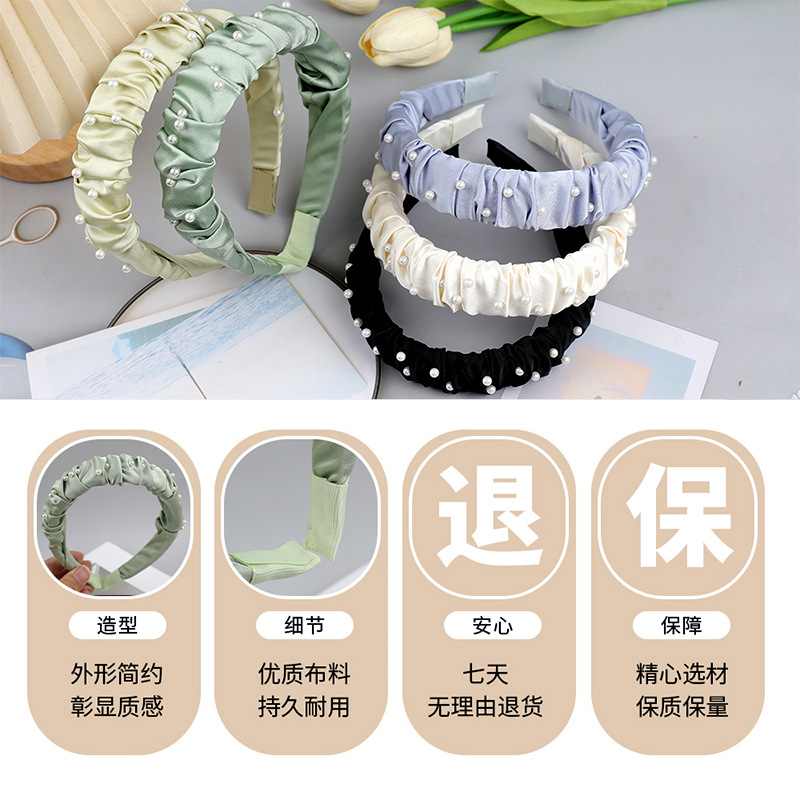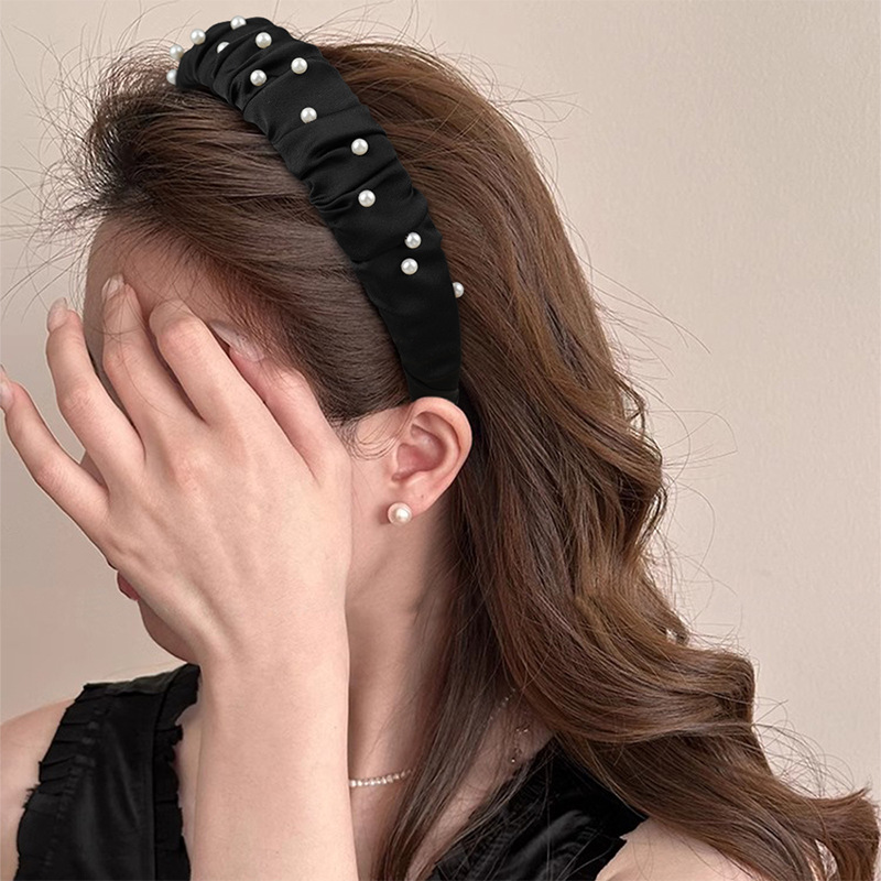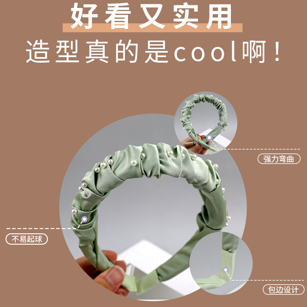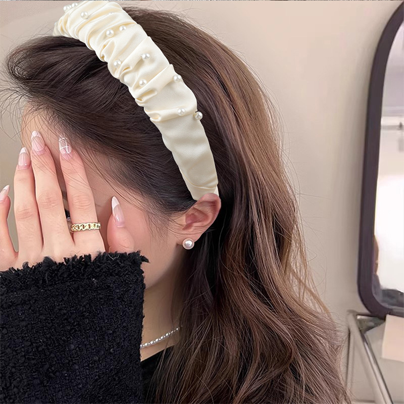 法式春夏褶皱珍珠发箍女高级感日常洗脸头箍压发发卡外出百搭发饰