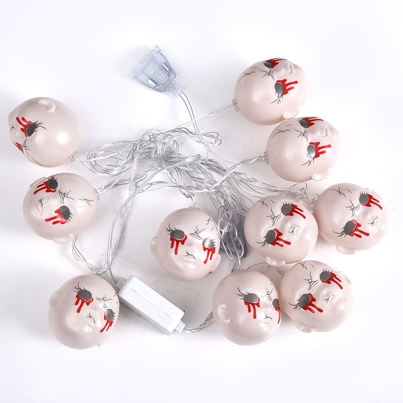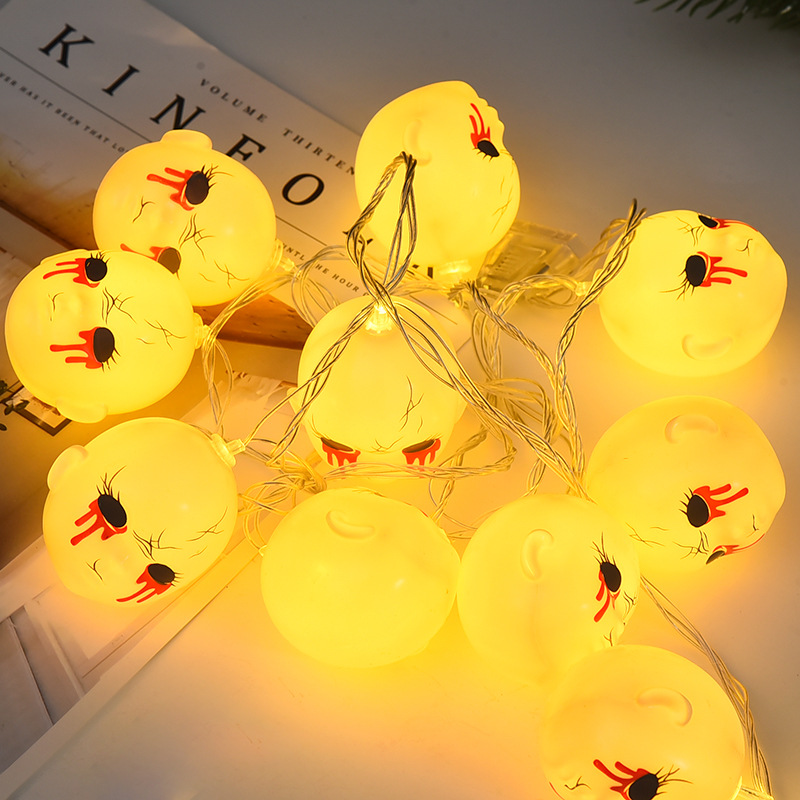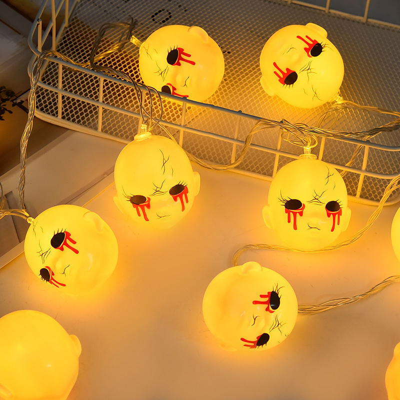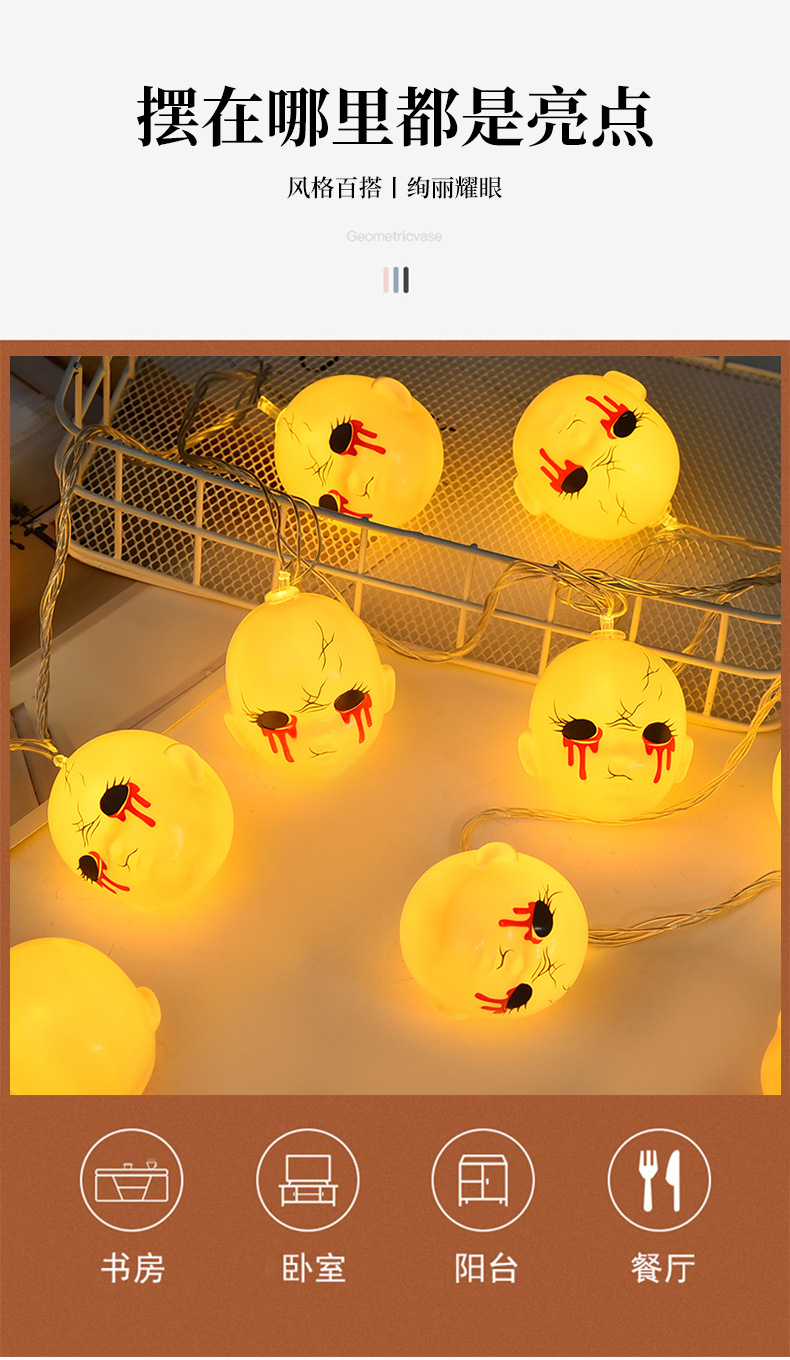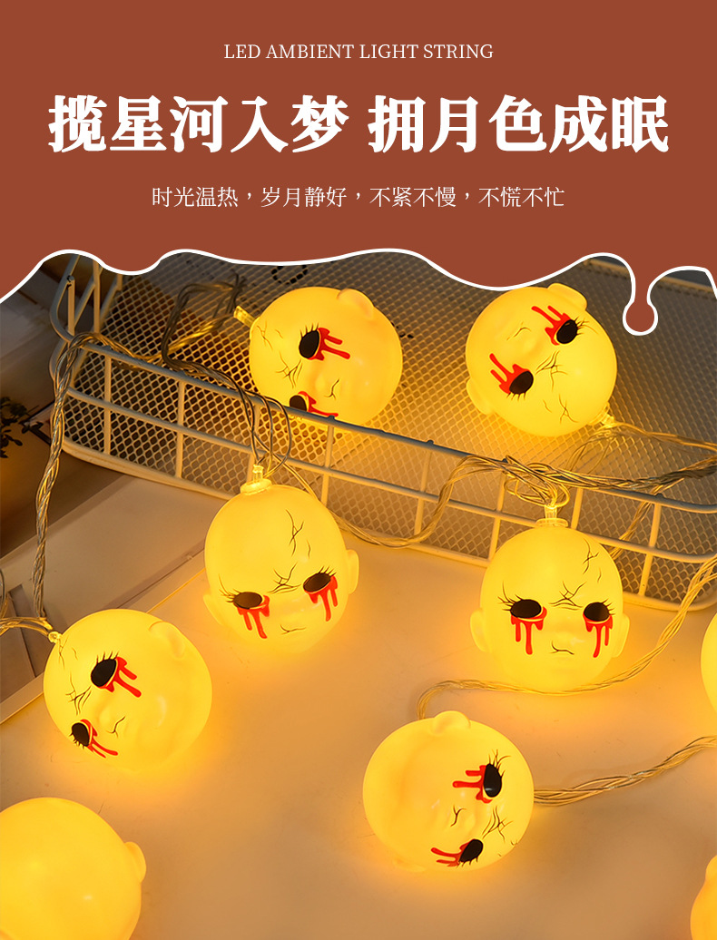 恐怖万圣节灯串LED亚马逊万圣节灯串场景布置鬼脸头灯串节日装饰