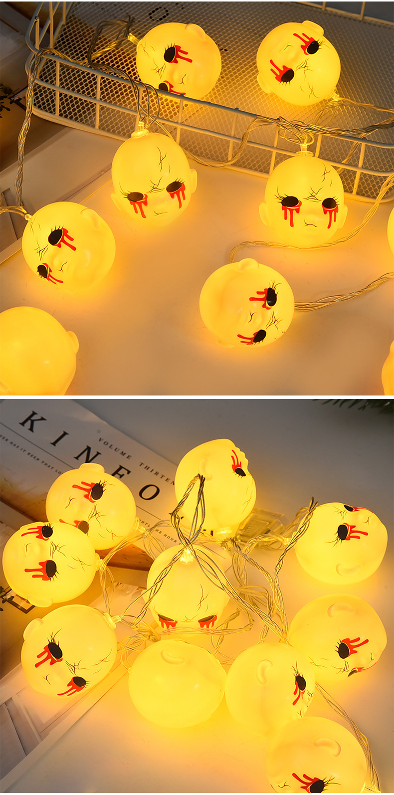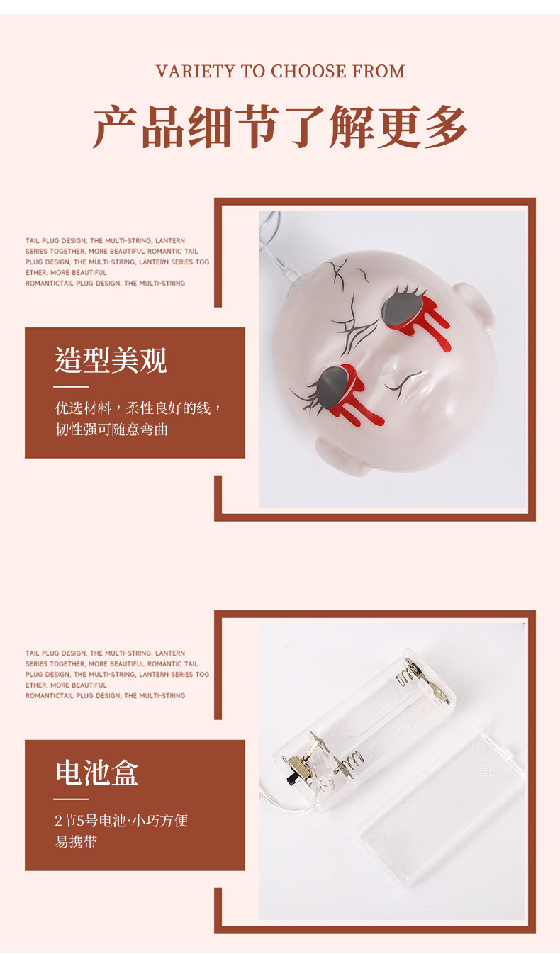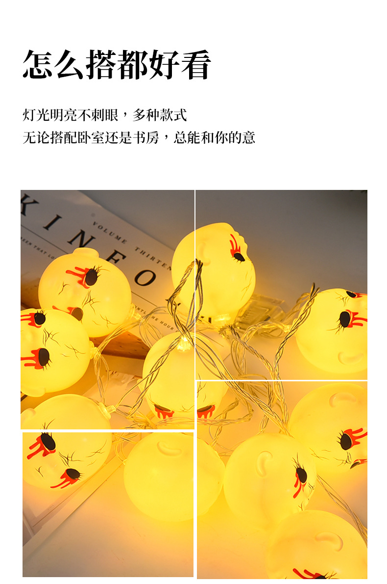 恐怖万圣节灯串LED亚马逊万圣节灯串场景布置鬼脸头灯串节日装饰