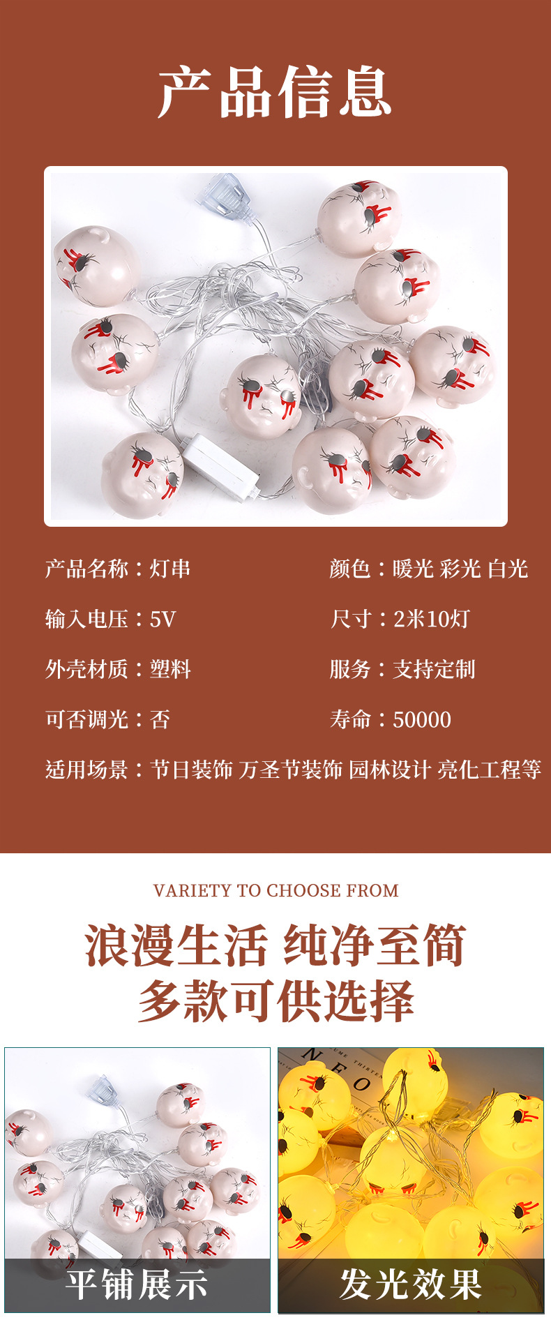 恐怖万圣节灯串LED亚马逊万圣节灯串场景布置鬼脸头灯串节日装饰 投诉