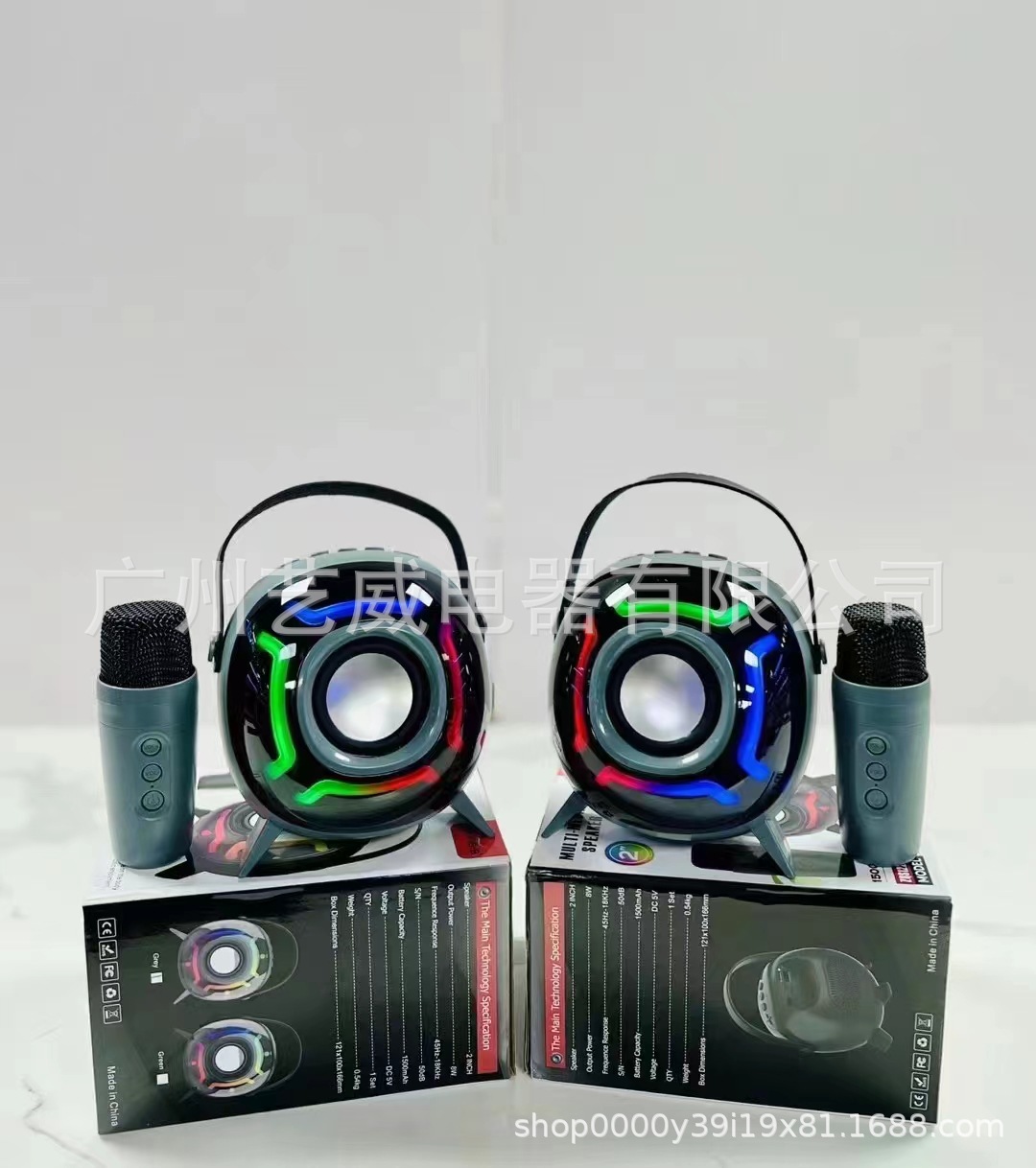 带BT/USB/TF卡/FM/带无线麦功能+USB不带升压、无锂电保护/无MIC/无遥控+带充电管理IC(4054)、DC-5V充电(Type-C充电座)+5W单功放/对箱功能、按键音量+带幻彩灯、幻彩灯受M键控制