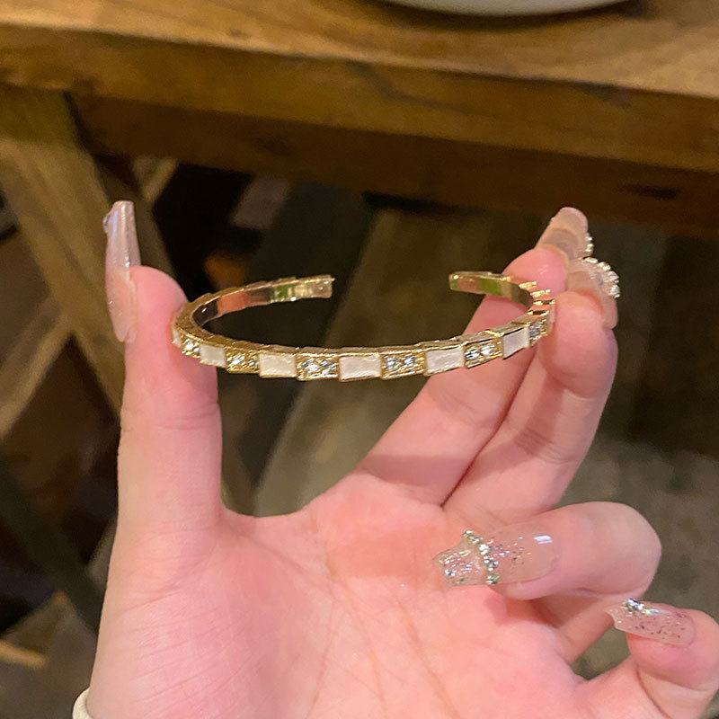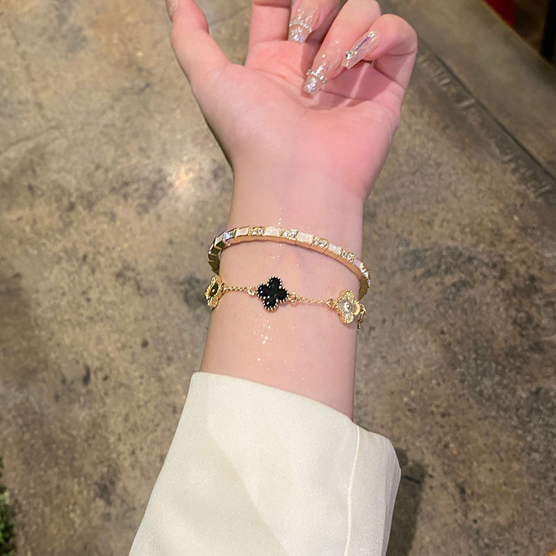 叠戴Bi入!显贵竹节猫眼石开口手镯女轻奢镭射四叶花高级气质手链 投诉