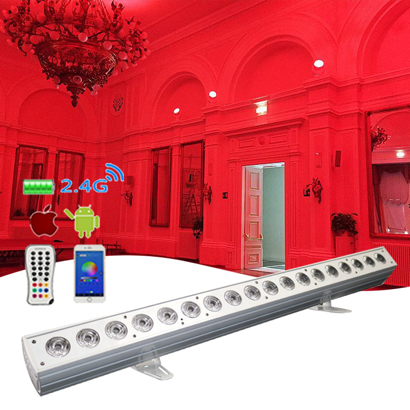 18颗18W室内防水 rgbwauv六合一 led 条形无线电池洗墙灯
