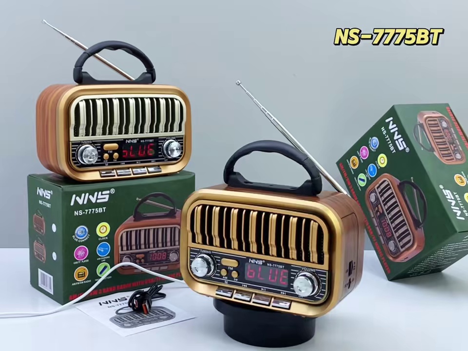 新品NS-7775复古蓝牙音箱多波段收音机无线便携桌面插卡音响礼品